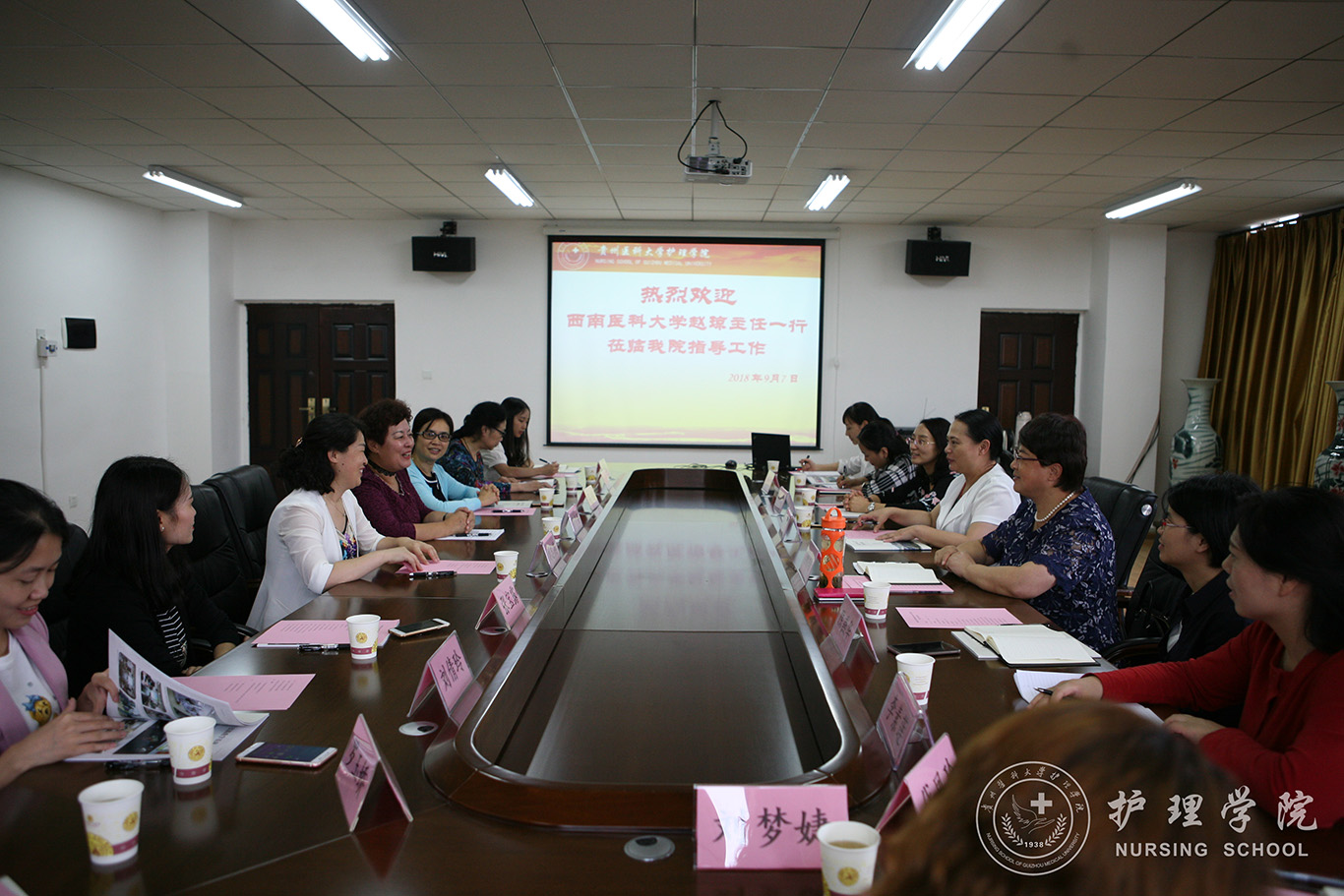9月7日下午,西南医科大学教学评估中心主任赵琼教授、太阳集团tyc9728经理鞠梅教授一行15人到公司太阳集团tyc9728交流学习专业认证准备工作经验。太阳集团tyc9728在百川楼会议室召开了交流座谈会热情接待了赵琼一行,院领导班子及全体教职工参会。会议由公司副经理刘志燕主持。