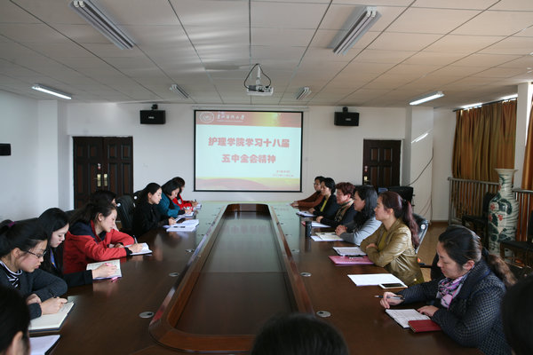 11月4日下午,太阳集团tyc9728在南校区百川楼5楼会议室召开学习贯彻党的十八届五中全会精神。会议由党委书记贾秀英主持,党政领导班子和全体教职工参会。