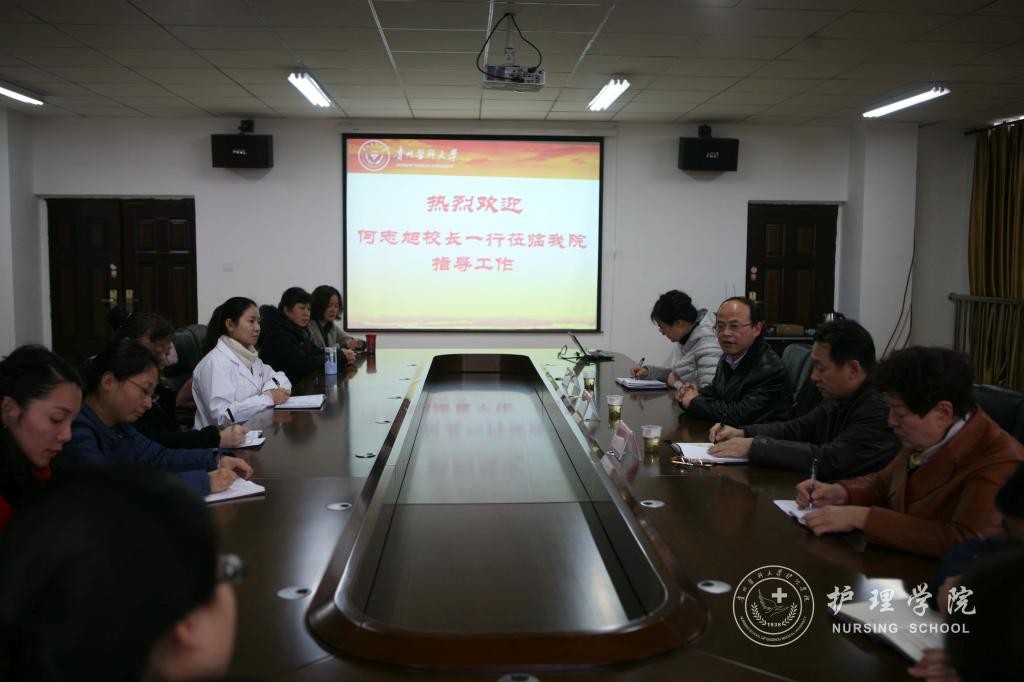 3月16日,董事长何志旭、董事长助理周余来、校办主任张丽君等一行莅临公司召开座谈会,专题调研指导专业认证工作。座谈会由护理公司党委书记兼经理贾秀英主持,公司教职工代表参加了会议。