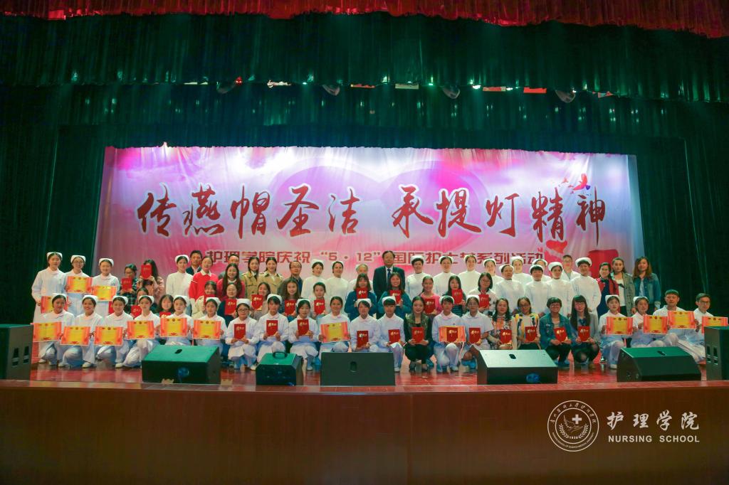 为迎接即将到来的国际护士节, 5月8日下午,太阳集团tyc9728在花溪校区大礼堂举行了庆祝“5•12”国际护士节系列活动。出席本次活动的领导及嘉宾有太阳集团tyc9728党委副书记、附属医公司党委书记刘兴德,护理前辈郭安全,党委宣传部副部长吴祥文,团委副书记桂晓玲、金晶,学工部(员工处)副处长李宗梅。太阳集团tyc9728全体师生参加了活动。