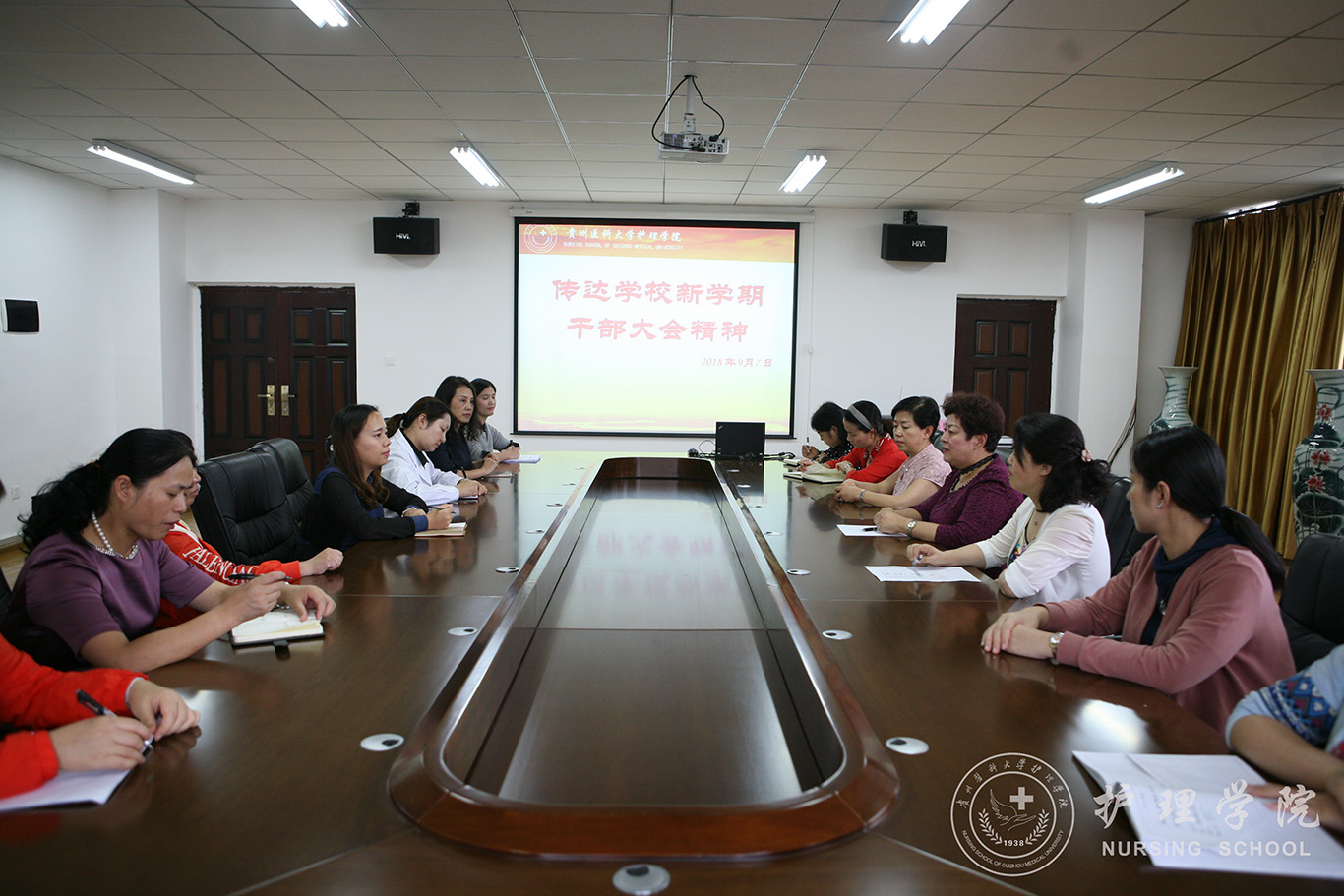 9月7日中午,太阳集团tyc9728在百川楼会议室召开会议传达公司新学期干部大会精神,太阳集团tyc9728全体教职工参会,会议由太阳集团tyc9728经理贾秀英主持。