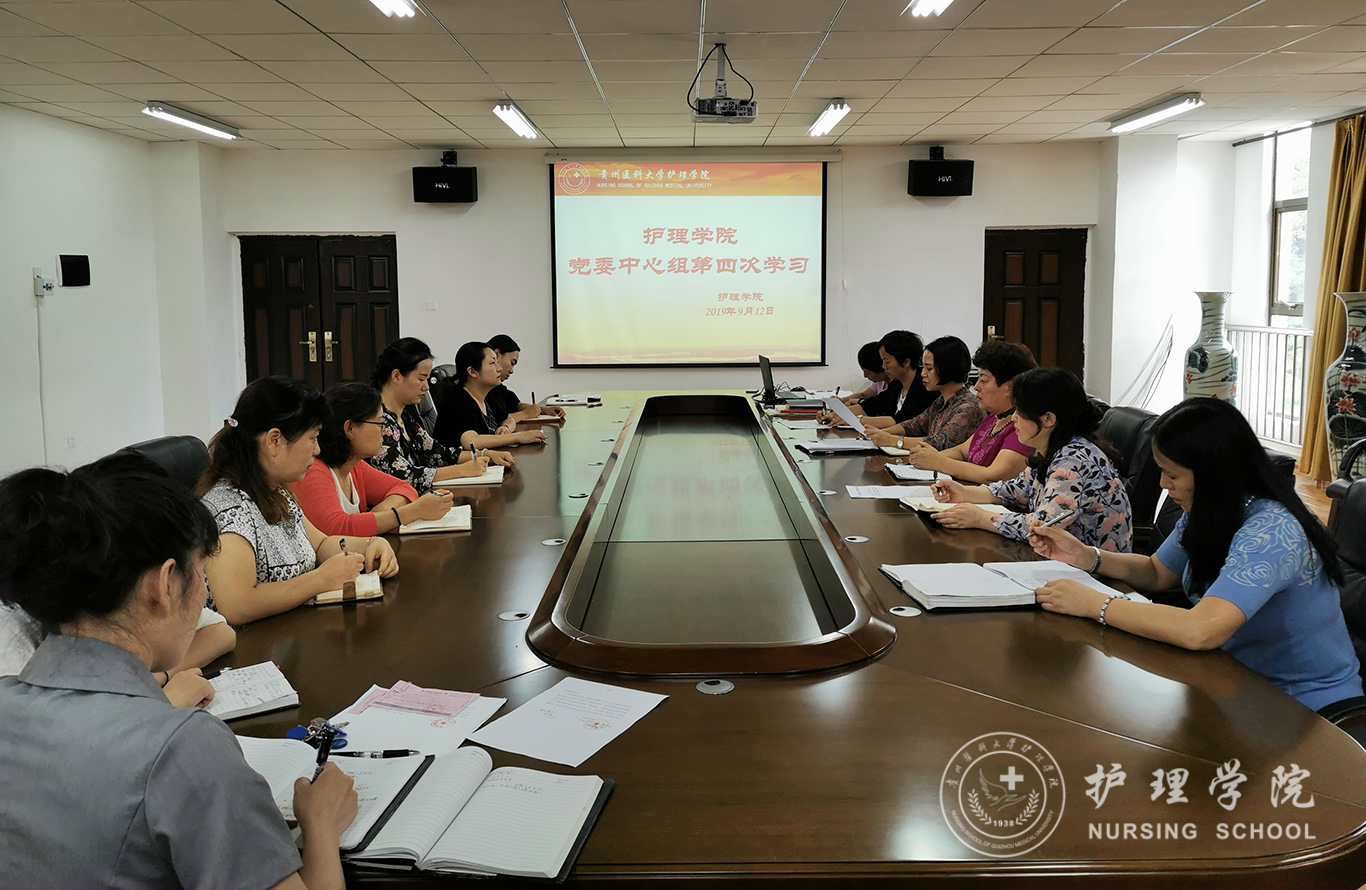 9月12日,太阳集团tyc9728在南校区百川楼5楼会议室组织了2019年党委中心组第四次理论学习。会议由护理公司党委书记杨英主持,公司副科级以上干部、教研室负责人参加了学习。