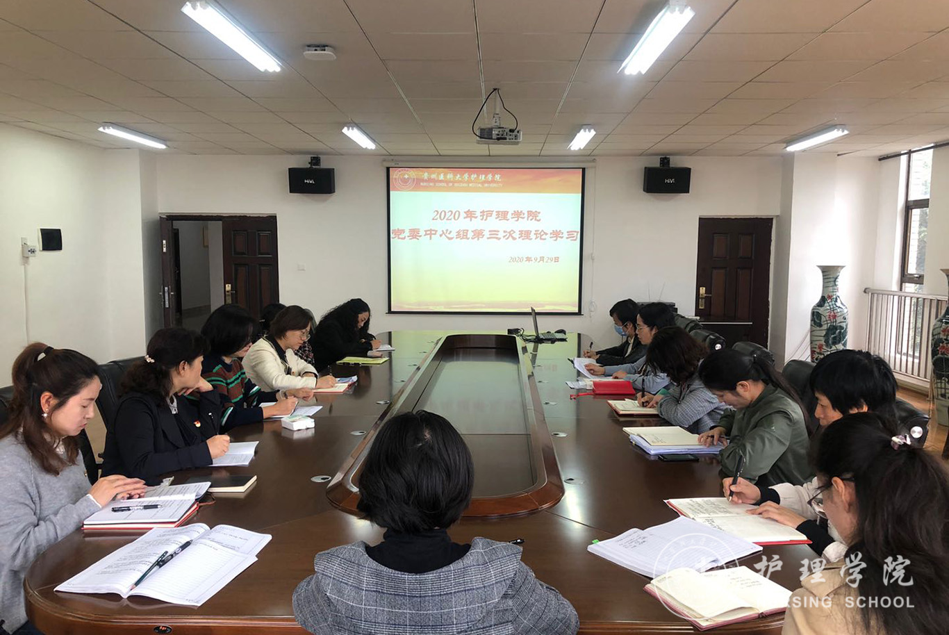 为深入学习贯彻习近平新时代中国特色社会主义思想,迅速掀起学习《习近平谈治国理政》第三卷的热潮,按照中央、省委、公司党委部署要求,太阳集团tyc9728于9月29日,在南校区百川楼五楼会议室召开了2020年党委中心组第三次理论学习。会议由党委书记杨英主持,全院副科级以上干部(含教研室、实验室主任)以及全体辅导员参加了学习。