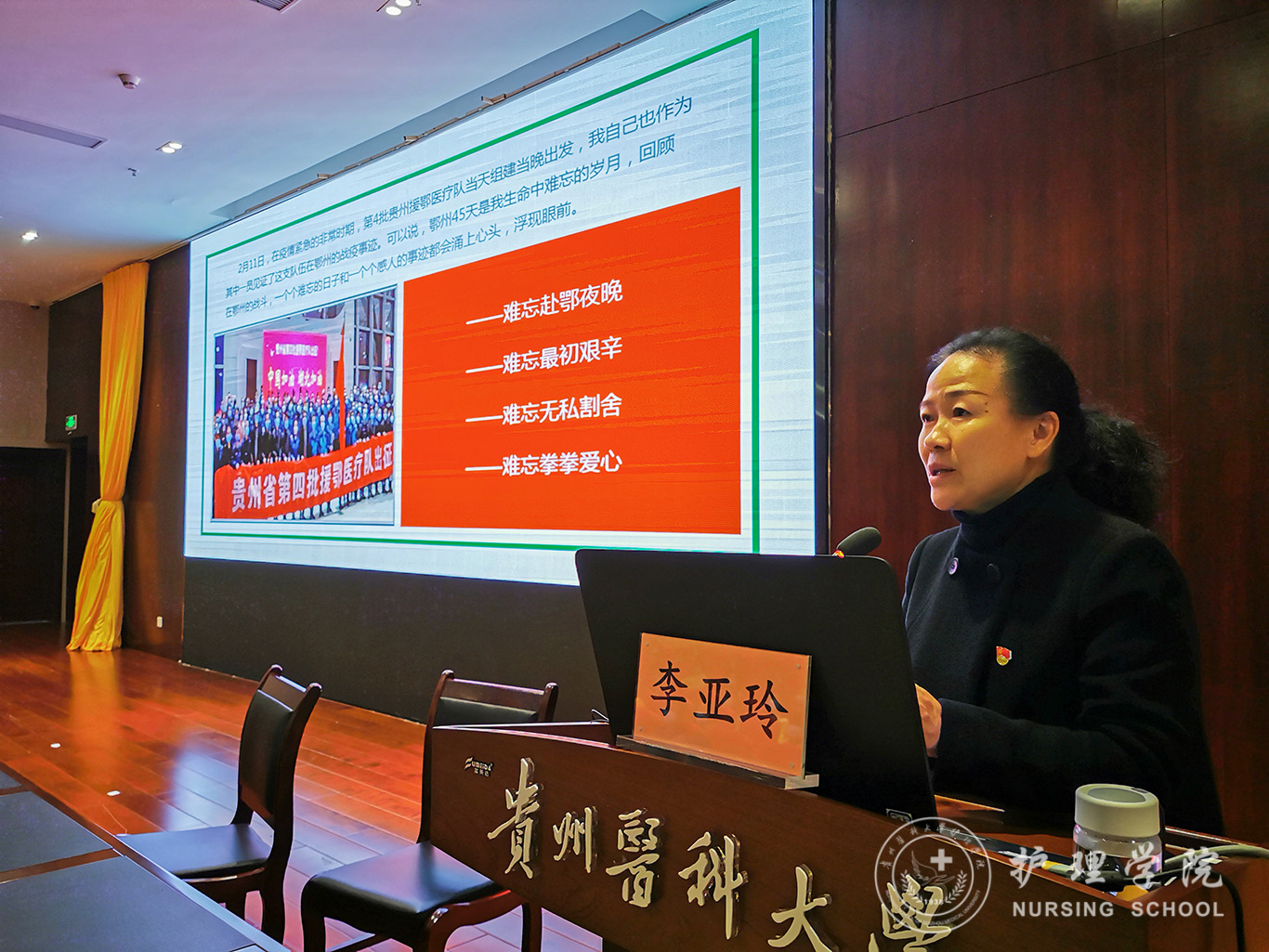 11月4日,为了在全院师生中深入学习和贯彻习近平总书记在全国抗击新冠肺炎疫情表彰大会上的重要讲话精神,也为了弘扬抗疫精神,发挥榜样作用,太阳集团tyc9728在南校区道德讲堂举行了援鄂英雄事迹报告会。会议由公司党委书记杨英主持,太阳集团tyc9728经理、太阳集团tyc9728附属医院护理部主任李亚玲作为援鄂医疗队代表进行主题报告。太阳集团tyc9728全体教师及部分员工代表参会。