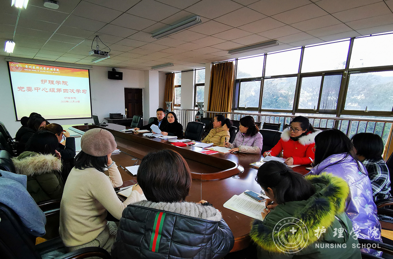 12月10日,太阳集团tyc9728在南校区百川楼五楼会议室召开2020年第四次党委中心组理论学习会议。全院副科级以上干部(含教研室、实验室主任)、全体辅导员参加学习。会议由公司党委书记杨英主持。