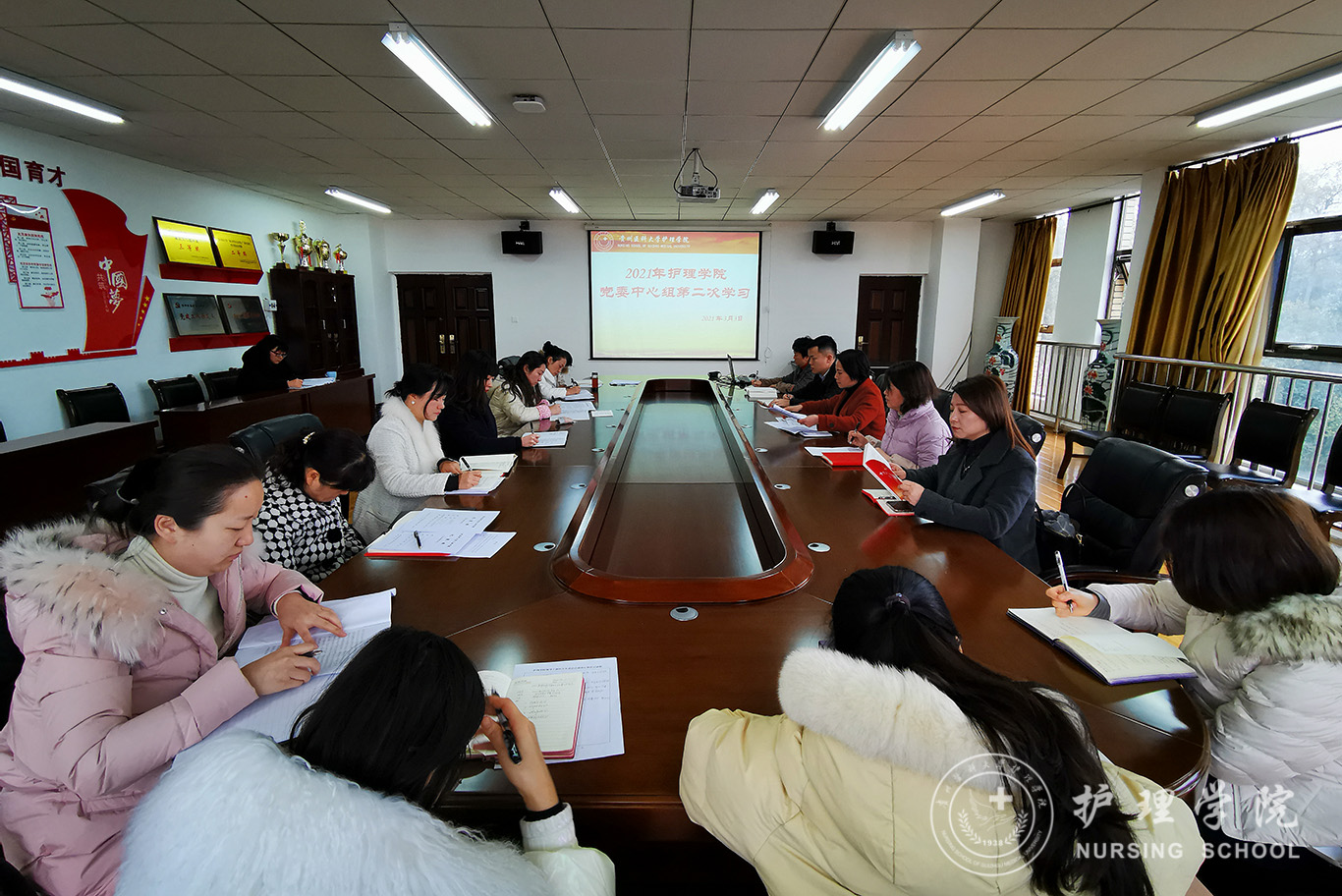 3月3日,太阳集团tyc9728在南校区百川楼五楼会议室召开2021年第二次党委中心组理论集中学习。全院副科级以上干部(含教研室、实验室主任)、全体辅导员参加学习。会议由公司党委书记杨英主持。