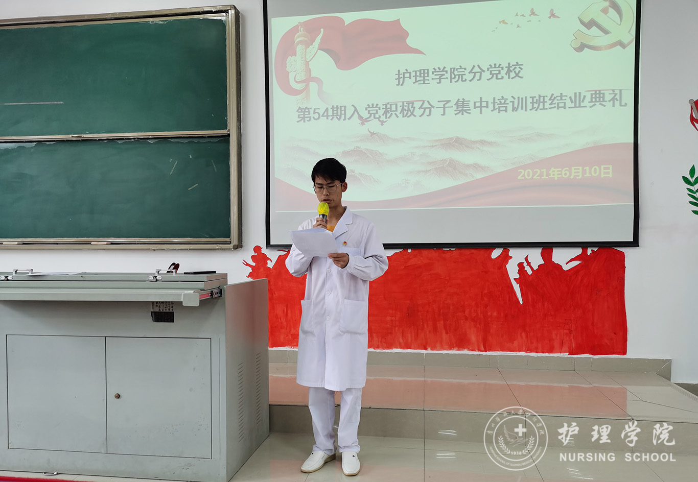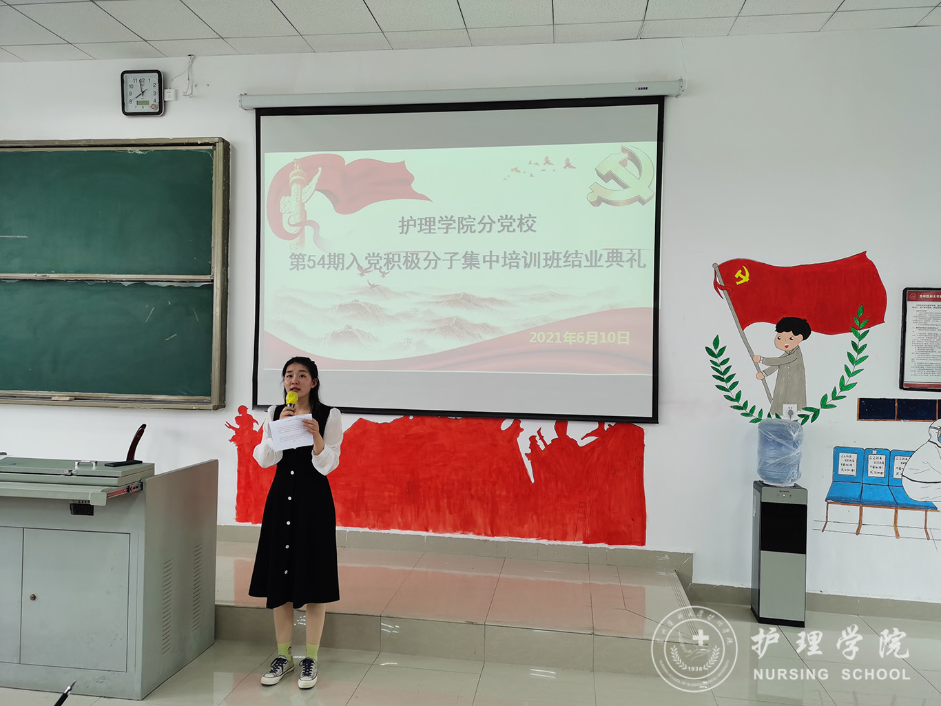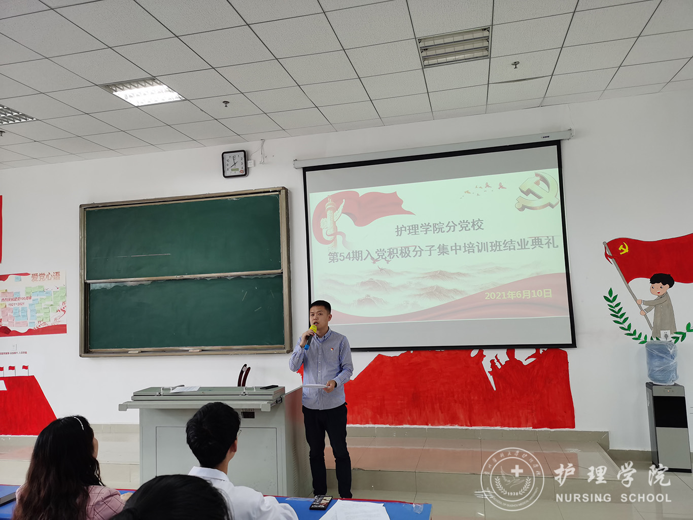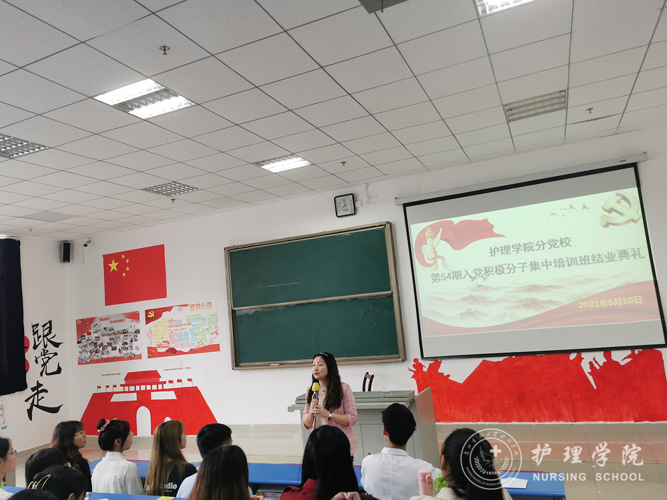 6月10日,太阳集团tyc9728分党校第54期入党积极分子培训班结业典礼在南校区1504教室举行。出席本次结业典礼的有护理公司党委副书记何为、太阳集团tyc9728正科级组织员曾敏以及本期培训班全体学员。结业典礼由班主任庞冰主持。