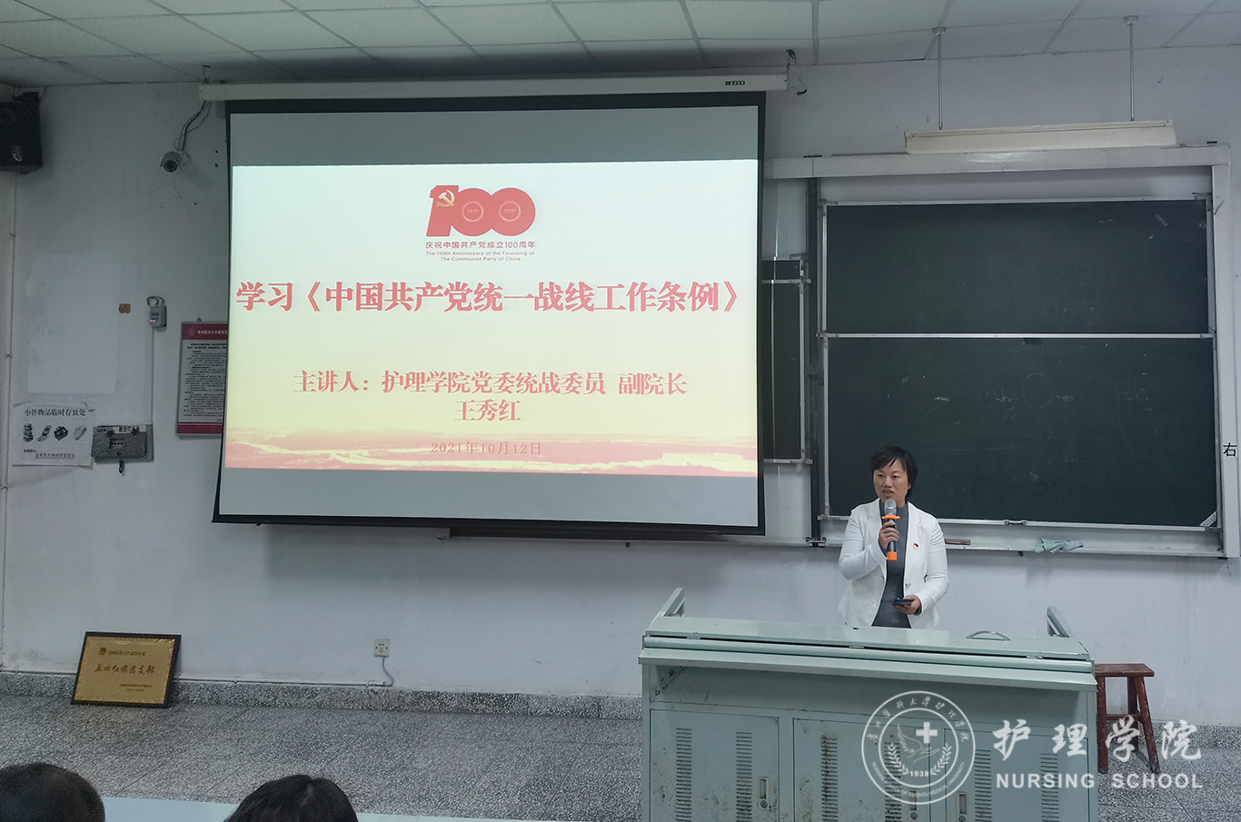 10月12日,太阳集团tyc9728于北校区3101教室通过线上线下相结合的方式组织全体教师、教职工党员、员工党员及入党积极分子学习《中国共产党统一战线工作条例》,太阳集团tyc9728正科级组织员曾敏主持,公司党委统战委员、副经理王秀红领学。