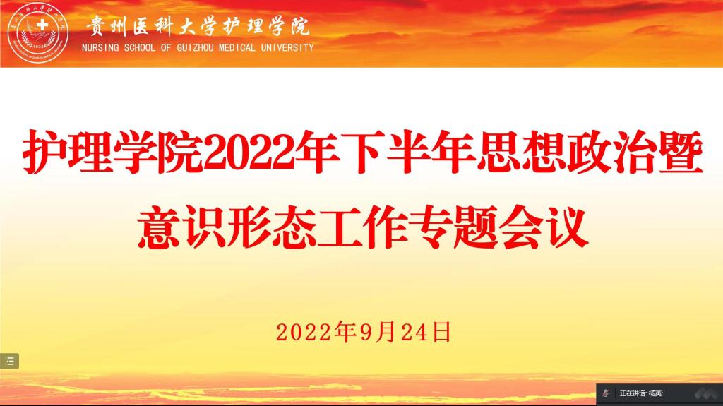会上,传达了贵州省教育系统有序恢复公司产品工作会议、全省教育系统统筹推进疫情防控安全稳定和事业发展工作专题会议精神,学习了《中国共产党宣传工作条例》,开展了师德师风警示教育,结合《护理公司党委2022年落实意识形态工作责任制任务清单》和上半年意识形态工作落实情况,对公司下半年思想政治工作和意识形态工作的重点进行了研究和部署。
