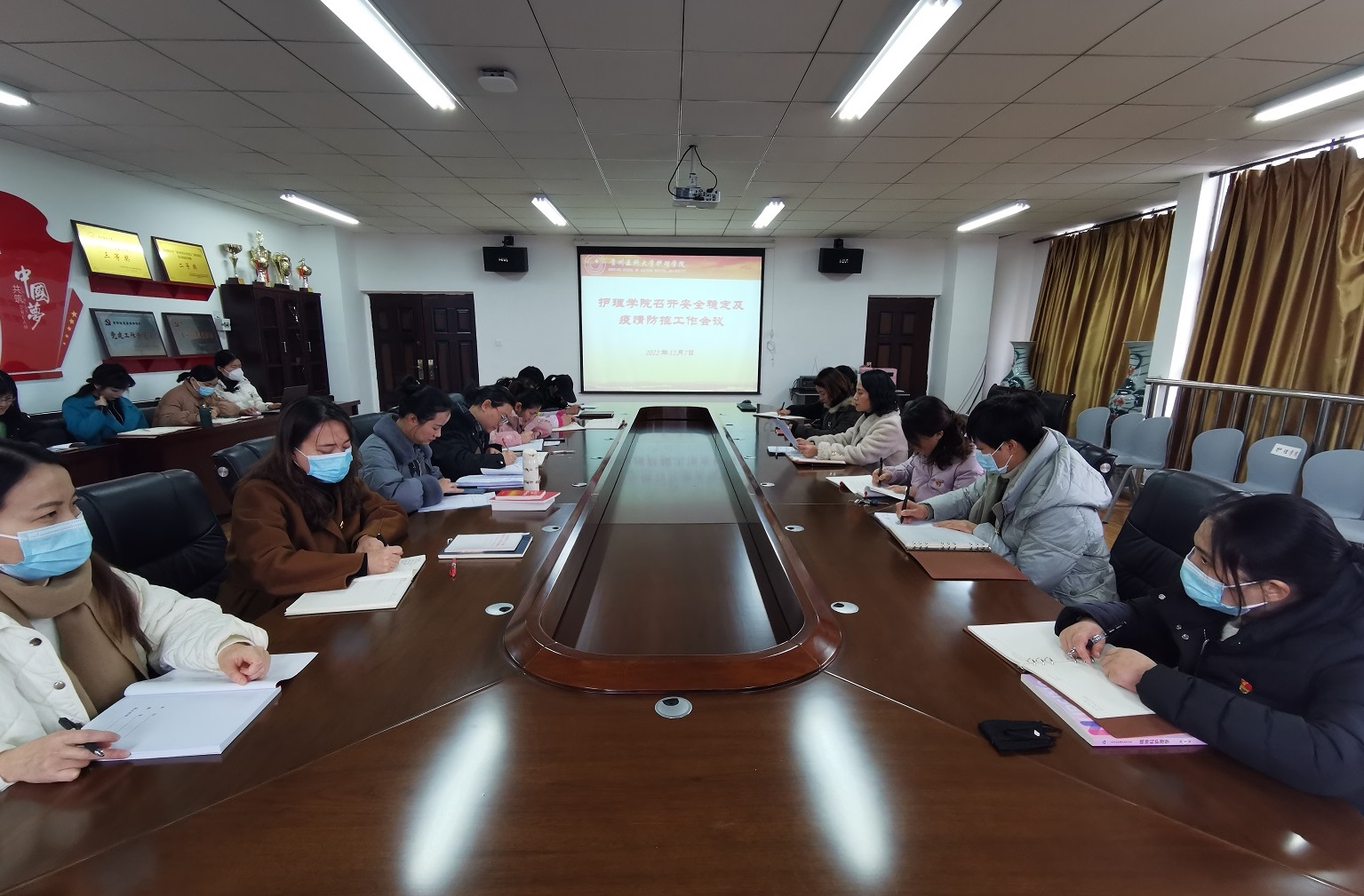 12月7日,太阳集团tyc9728在南校区百川楼会议室召开安全稳定及疫情防控工作会议,传达相关文件和会议精神并部署工作,会议由公司党委书记杨英主持,全院教职工参加。