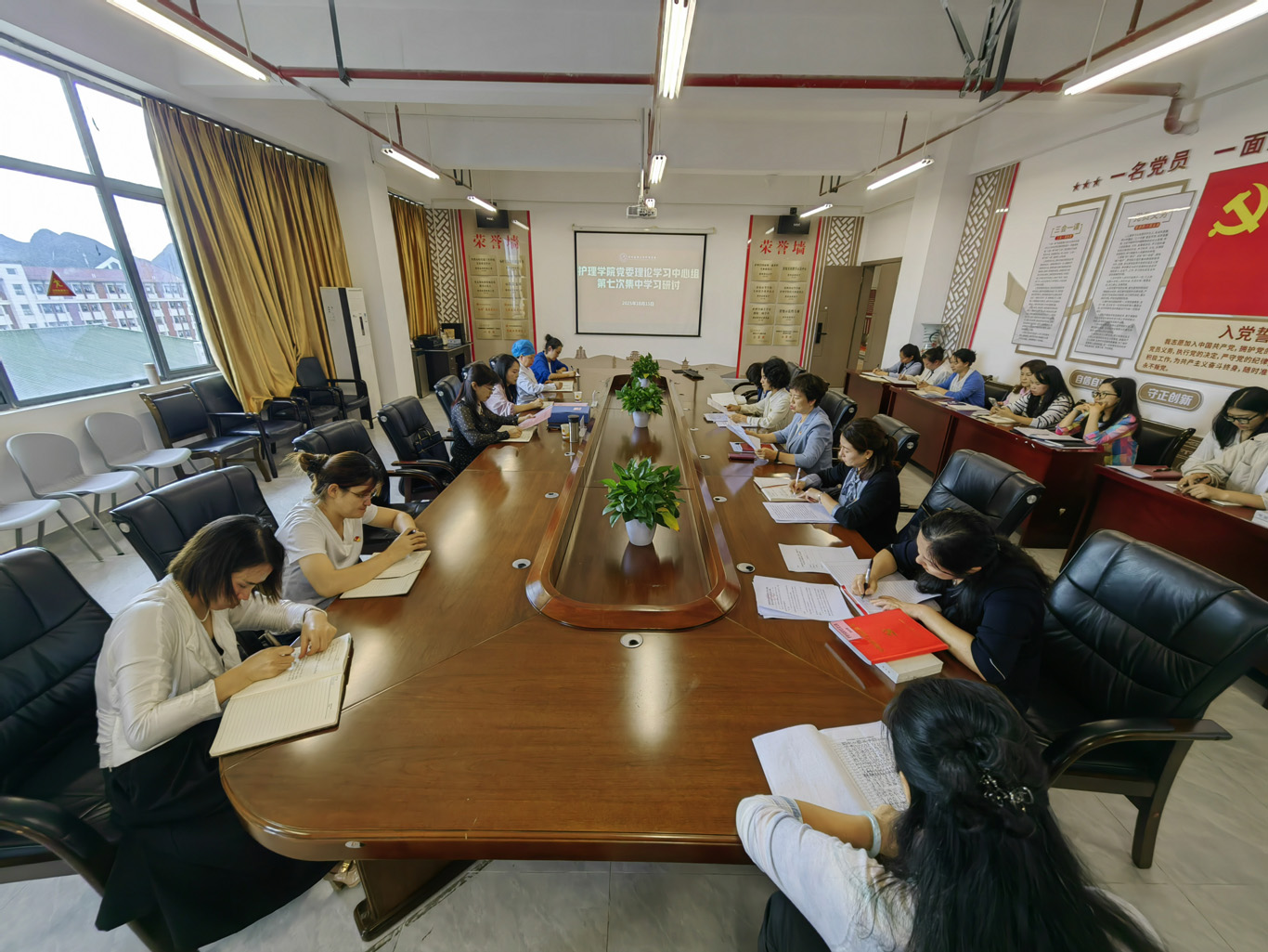 10月15日下午,太阳集团tyc9728在云漫湖校区酬勤楼六楼会议室召开了党委理论学习中心组第七次集中学习研讨会,公司党委领导班子成员、副科级以上干部、党支部书记和全体辅导员参会,生物与工程公司(健康医药现代产业公司)党委书记岳萍、正科级组织员李尔舒列席旁听,会议由公司党委书记杨英主持。