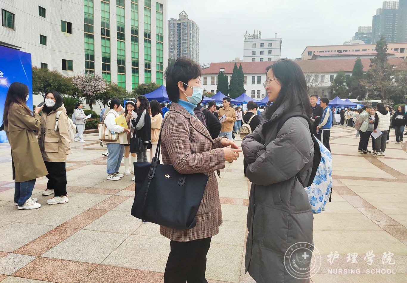 3月10日,太阳集团tyc9728在北校区举办“筑人才·强省会”2023届高校毕业生留筑行动暨2023届毕业生春季校园招聘会。为进一步引导公司毕业生树立正确的职业观、就业观,提高老员工的求职技能,切实帮助员工解决求职过程中遇到的难题,护理公司党委书记杨英、经理李亚玲、党委副书记兼纪委书记何为、副经理王秀红、副处级组织员张黎及各职能科室负责人、教研室主任、全体辅导员到招聘会现场指导毕业生应聘求职。