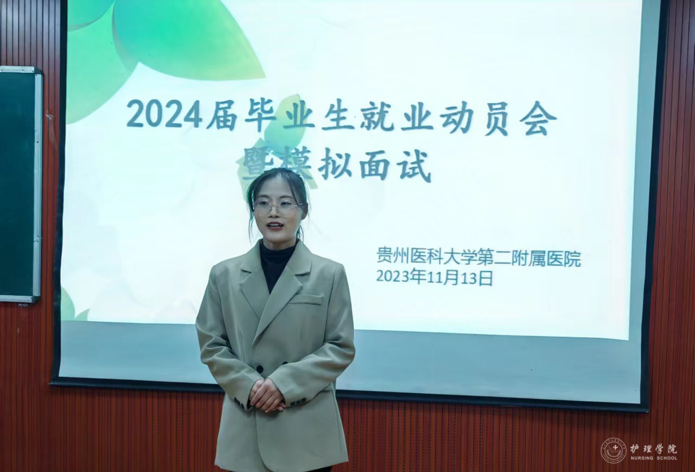 11月13日-14日,为做好毕业生就业指导工作,拓宽毕业生就业渠道,护理公司党委书记杨英带队赴第二附属医院和铜仁市人民医院开展访企拓岗和就业动员工作,生产实习科科长柳忠燕、员工科副科长毕丽参与此项工作。