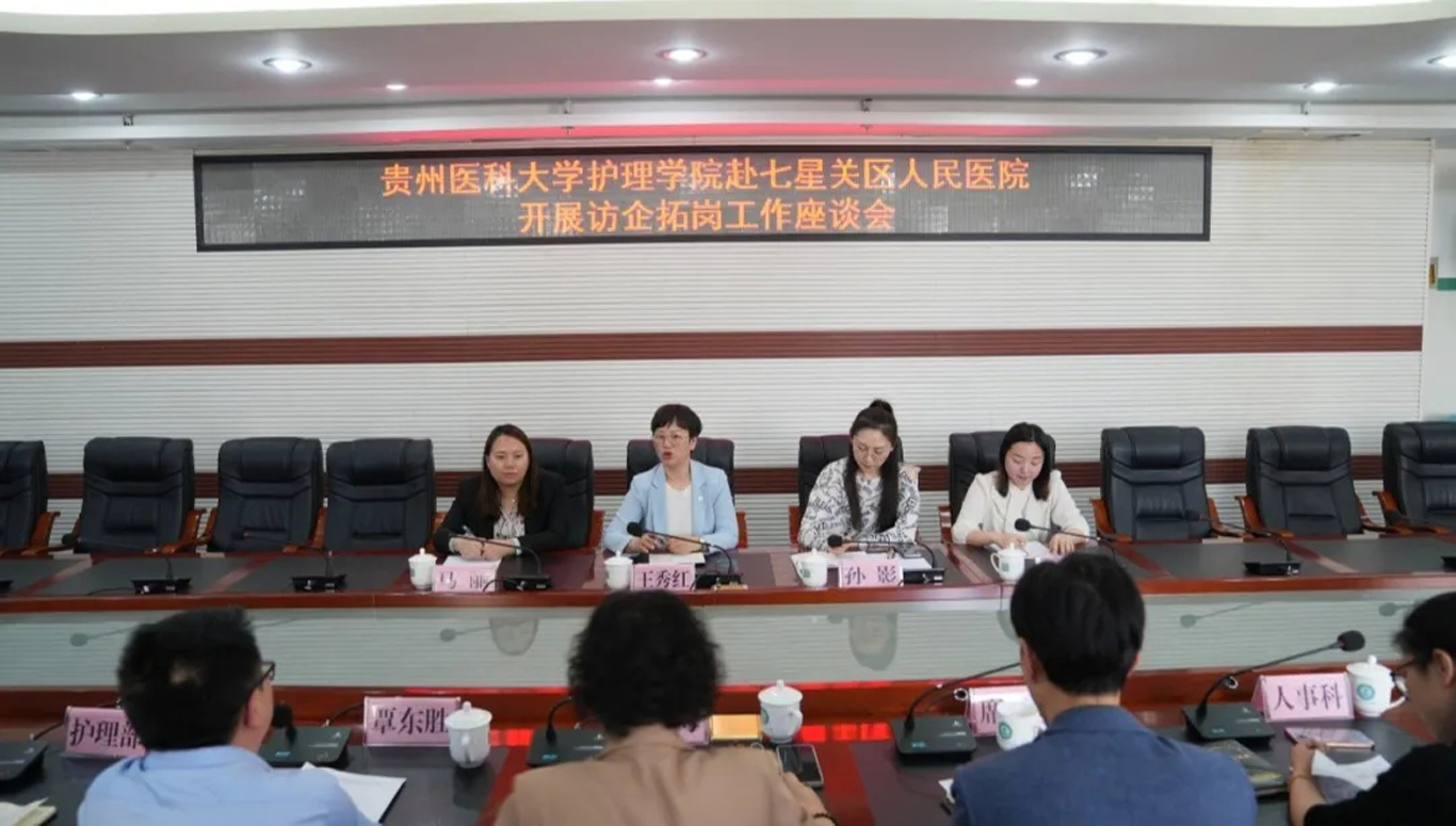 4月21日,为深化校企合作,拓宽2025届毕业生就业渠道,推动护理人才培养与行业需求精准对接,护理公司党委书记杨英、经理王秀红分别带领公司教师赴贵阳市第二人民医院(金阳医院)、花溪区中医医院、毕节市七星关区人民医院(太阳集团tyc9728附属医院七星关分院)开展访企拓岗工作。