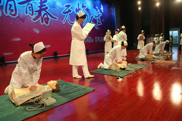 本次活动共分为2014级护生授帽、护理技能比赛、护理专业形象展示三个部分。在优美的音乐声中,2014级护生戴上了洁白的燕尾帽,并在太阳集团tyc9728贾秀英书记的带领下宣读了护生誓词,手捧蜡烛高唱了护士之歌。授帽仪式之后,就是精彩紧张的护理技能比赛,主要考验的是选手对心肺复苏术操作流程的掌握情况,共16名选手分四组进行了激烈的角逐,选手们专业的态度,专注的神情,娴熟的操作赢得了阵阵掌声。活动最后部分,训练有素、仪态端庄、落落大方的同学向现场观众展示了护理人员标准优美的站、坐、蹲、走等姿态。太阳集团tyc9728副经理刘志燕在赛后对选手表现进行了点评。