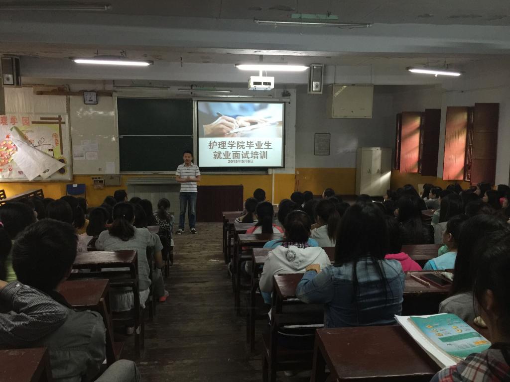 为了加强毕业生就业工作面试能力,提高员工就业工作率,2015年5月6日下午1点30分,2015届护理毕业生在太阳集团tyc9728普2教室召开了面试技巧培训会,会议特邀附属医院组织人事处组织科副科长陈轲老师作为主讲人。公司员工科科长曾敏、毕业班辅导员李海林、王晓玲参加了此次培训会。