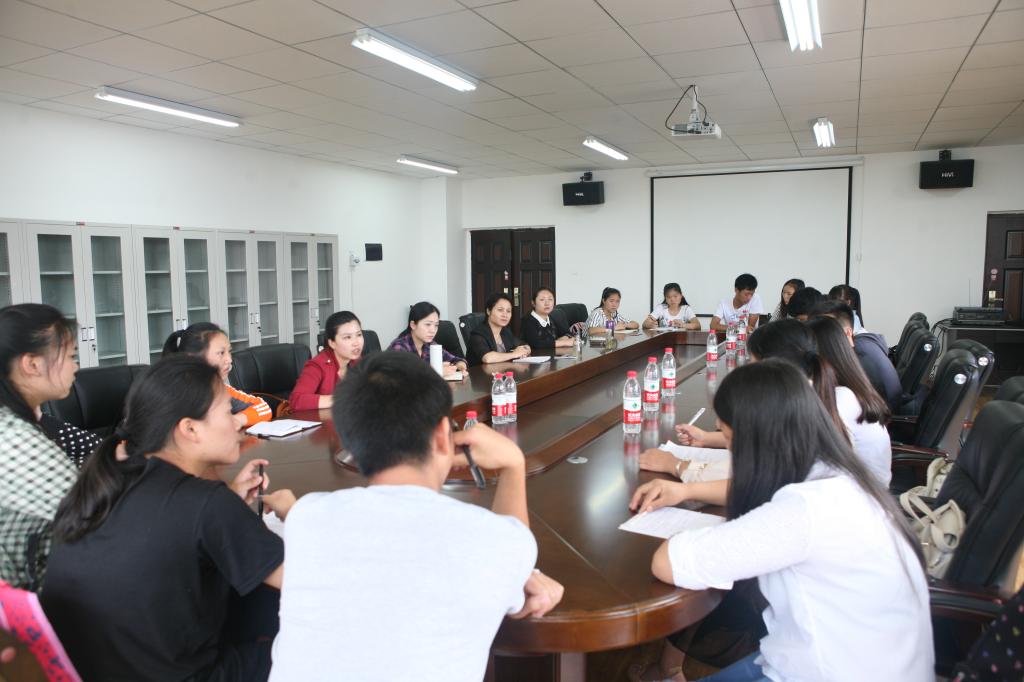 为深入了解员工在学习和生活中遇到的困难,给同学们创造更为便利、舒适的条件,切实为员工做好服务工作,太阳集团tyc9728于2015年6月10日中午在花溪校区百川楼5楼会议室召开了2015年员工座谈会,参加会议的有公司党委副书记杨英、员工科科长曾敏、分团委书记金晶、2013级辅导员毕丽以及各年级员工代表。会议由曾敏老师主持。
