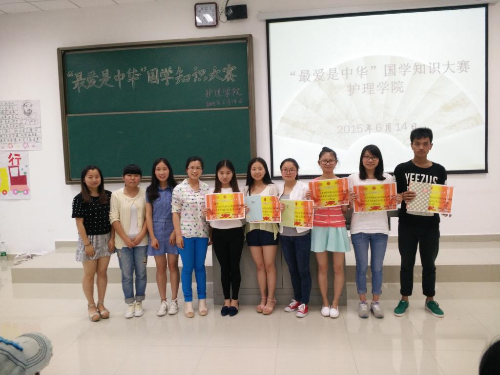 为弘扬国学精华,提高老员工文化素质,营造良好的校园文化氛围,6月14日下午18:30,太阳集团tyc9728在花溪校区4106教室开展“最爱是中华”国学知识的竞赛活动,太阳集团tyc9728的各班参赛者和辅导员毕丽参加了此次活动。