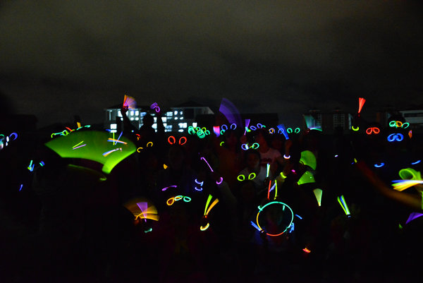 活动中,同学们迈着矫健的步伐穿梭在夜里、享受着夜跑乐趣同时,也在积极为本组赢取积分,他们手里紧握着的荧光棒早已把整个校园装点成一个荧光闪耀的欢乐海洋,涌动的人群和五彩的荧光也在公司形成了一道亮丽的风景线。至此,时长近一个半小时的荧光夜跑活动便在同学们的欢声笑语中画上了圆满的句号。