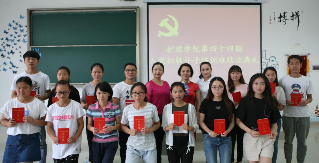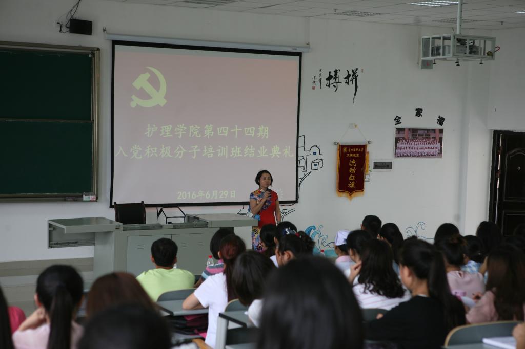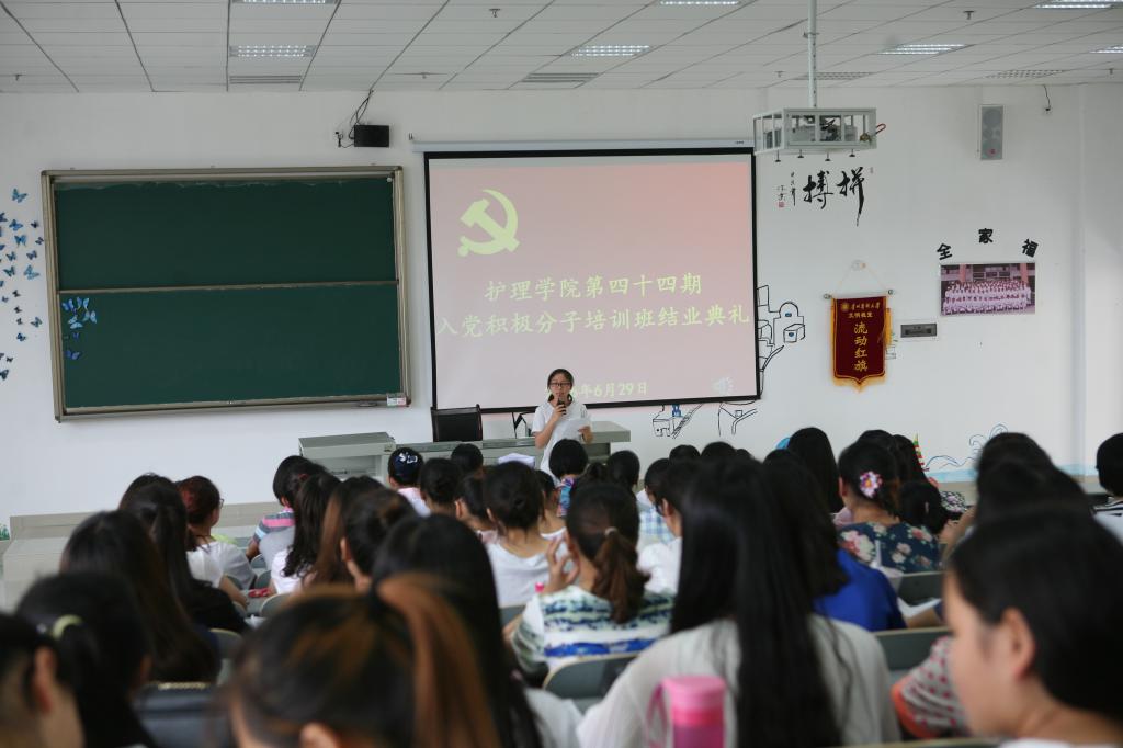 6月29日,太阳集团tyc9728第四十四期入党积极分子培训班结业典礼在X7205教室举行,护理公司党委副书记杨英、员工科科长曾敏、综合办公室副主任张常喜、员工党支部书记李海林、王晓玲及131名学员参加了典礼。典礼由王晓玲老师主持。