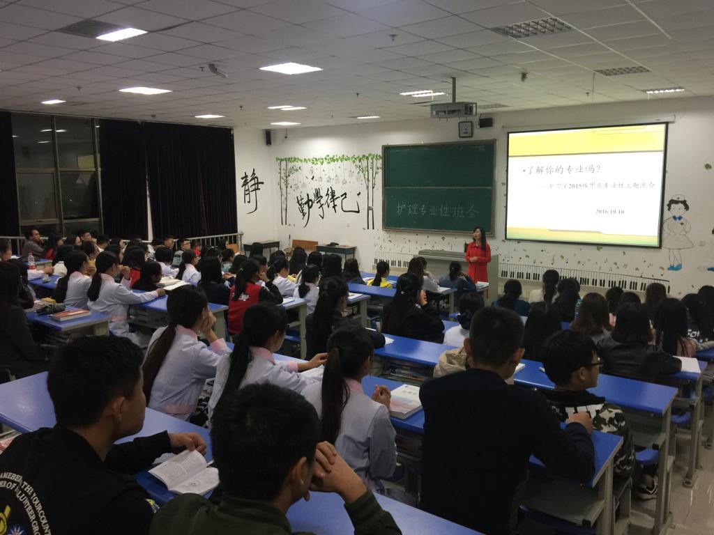 2015级护理学乙班的班主任李红则针对同学们普遍关注的护理专业就业前景、专业执业资格证书、考研、出国等个人职业发展选择方面问题进行了介绍,增强了同学们的专业兴趣,同学普遍反映受益匪浅。