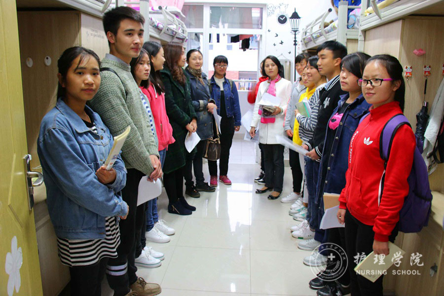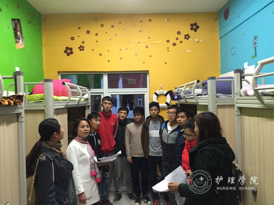 为加强校园文化建设和安全文明教育工作,迎接评估认证,提高公司员工的安全卫生意识,创建整洁文明的学习生活环境。11月1日、2日,护理公司党委副书记杨英、员工科科长曾敏、分团委书记金晶,带领各班辅导员对南、北校区员工宿舍进行了走访检查。