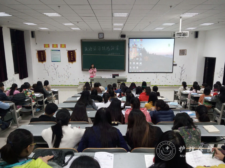 2016年11月1日晚上7点,太阳集团tyc9728在北校区4407教室举行了“英语学习技巧分享”主题班会,参加本次班会的有特邀分享嘉宾文红梅同学和2015级护理乙班全体同学。班会由2015级护理乙班班主任李红老师主持。