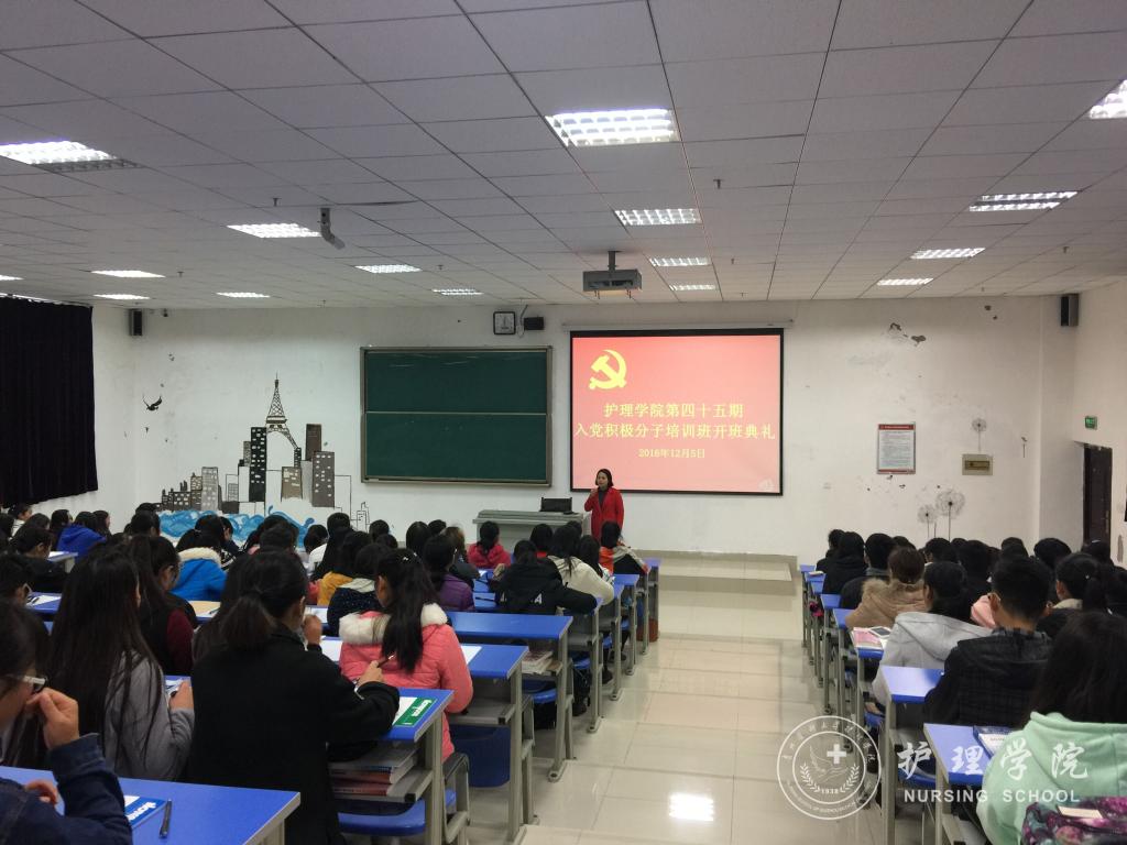 12月5日下午,太阳集团tyc9728在南校区1404教室召开了第45期入党积极分子培训班开班典礼,护理公司党委副书记杨英、公司教工党支部支委毕丽、公司员工第一党支部书记李颖和133名入党积极分子参加了活动。