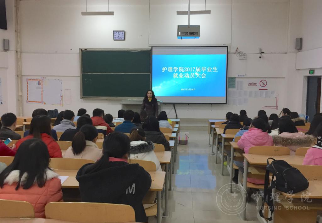 为鼓励2017届毕业生积极就业,指导毕业生树立正确的就业观念, 2月23日晚19点公司在北校区4101教室举行了2017届毕业生就业动员大会。会议由毕业班辅导员王晓玲老师主持,护理公司党委副书记杨英和2017届毕业实习生参加了此次会议。