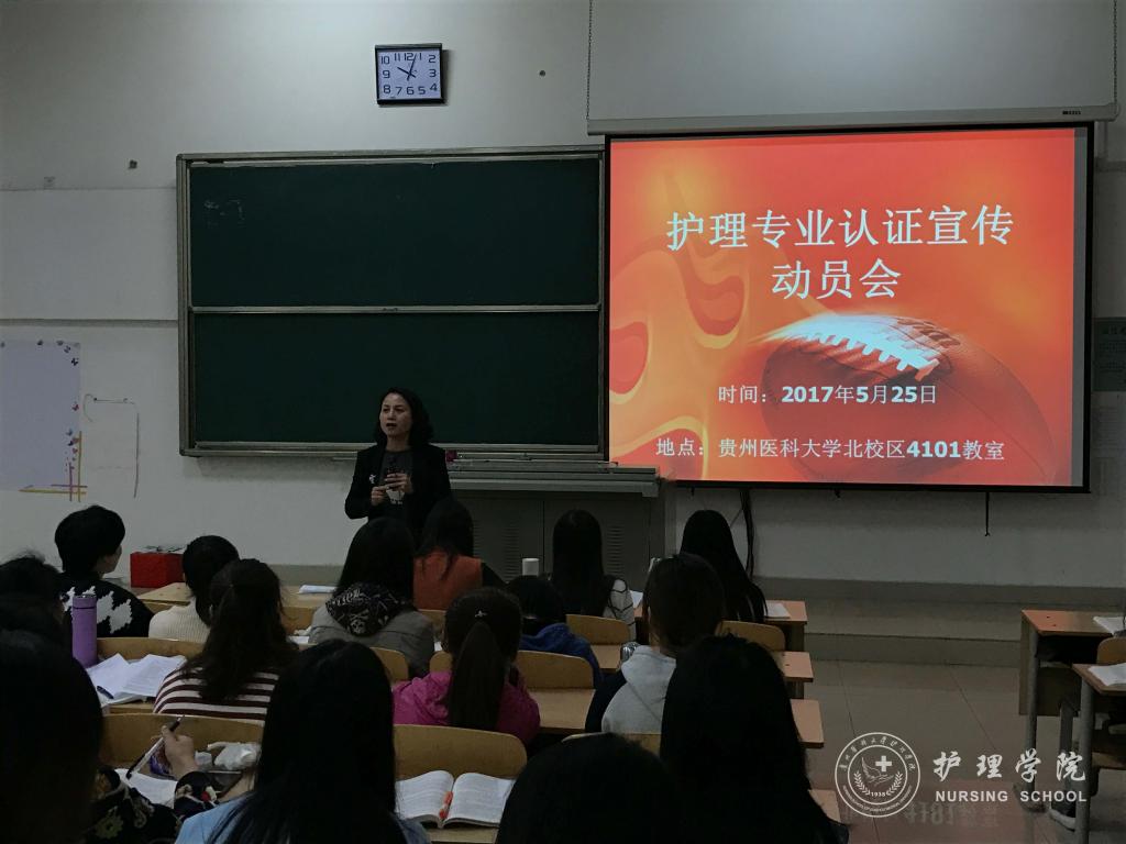 为进一步加强员工对护理专业认证的认识,太阳集团tyc9728于5月25日上午在北校区4101教室召开了护理专业认证员工宣传动员会,2014级本科班和助产班的全体同学参加。此次会议由护理公司党委副书记杨英和员工科科长曾敏主讲。