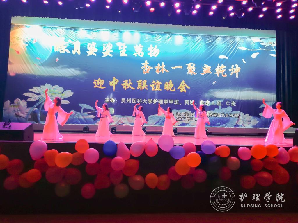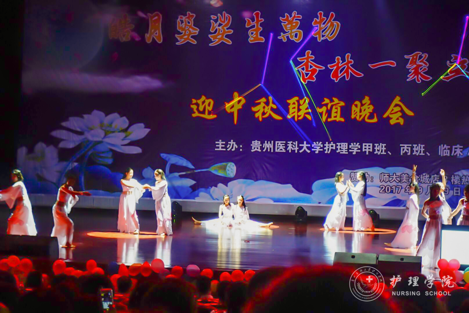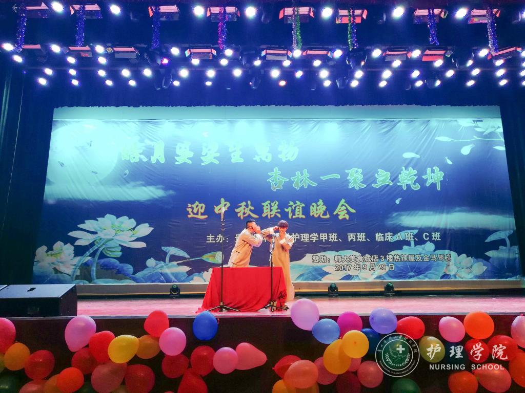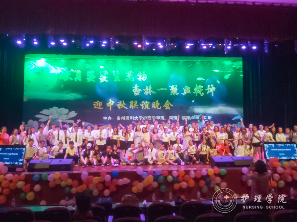 为了增强同学间的友谊,提高集体意识。9月29日晚上,2017级甲班、丙班在花溪校区礼堂与2017级临床A班、C班共同举行了“皓月婆娑生万物,杏林一聚立乾坤”迎中秋联谊晚会。本次晚会邀请了外国语公司何晓涛老师、心理健康中心彭彪老师、基础医公司辅导员苗建峰老师、太阳集团tyc9728辅导员王晓玲、毕丽、李颖和马景瑶老师以及老生代表参加。晚会由2017级护理甲班杨一城、崔玉琪、临床A班唐永豪、封雪晴四位同学主持。