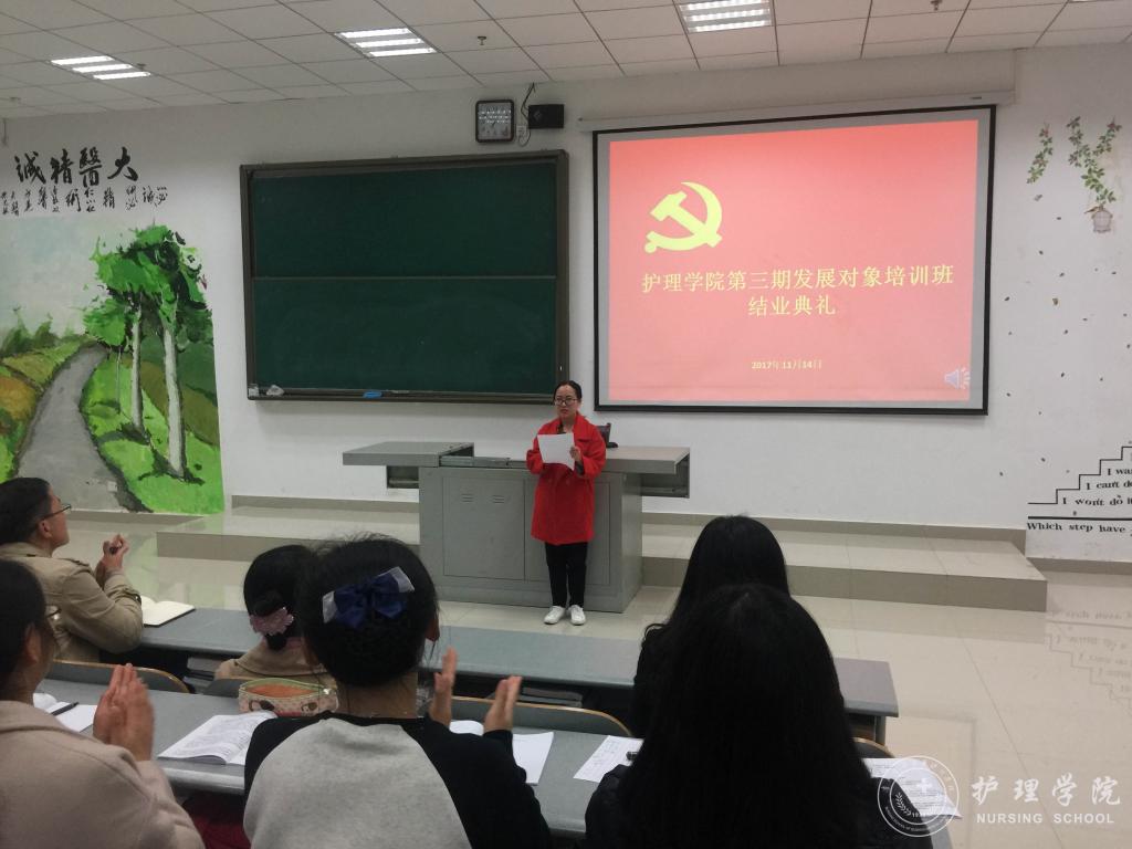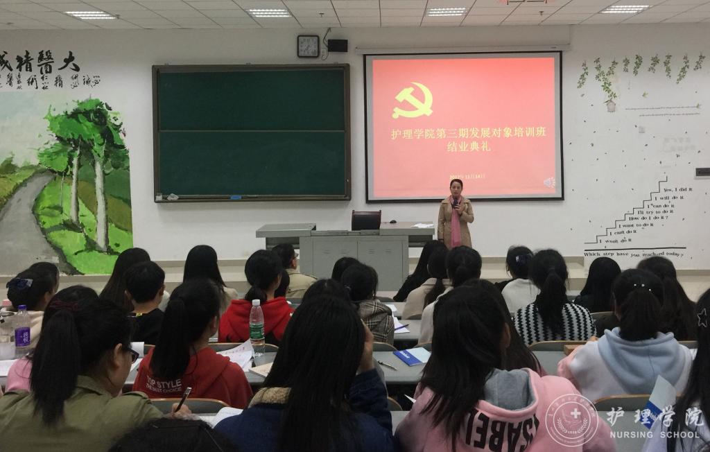 11月14日下午,太阳集团tyc9728第3期发展对象集中培训班结业典礼在南校区4405教室举行。护理公司党委副书记杨英、员工党支部副书记马景瑶及全体学员参加了结业典礼。典礼由本期培训班班主任李颖主持。