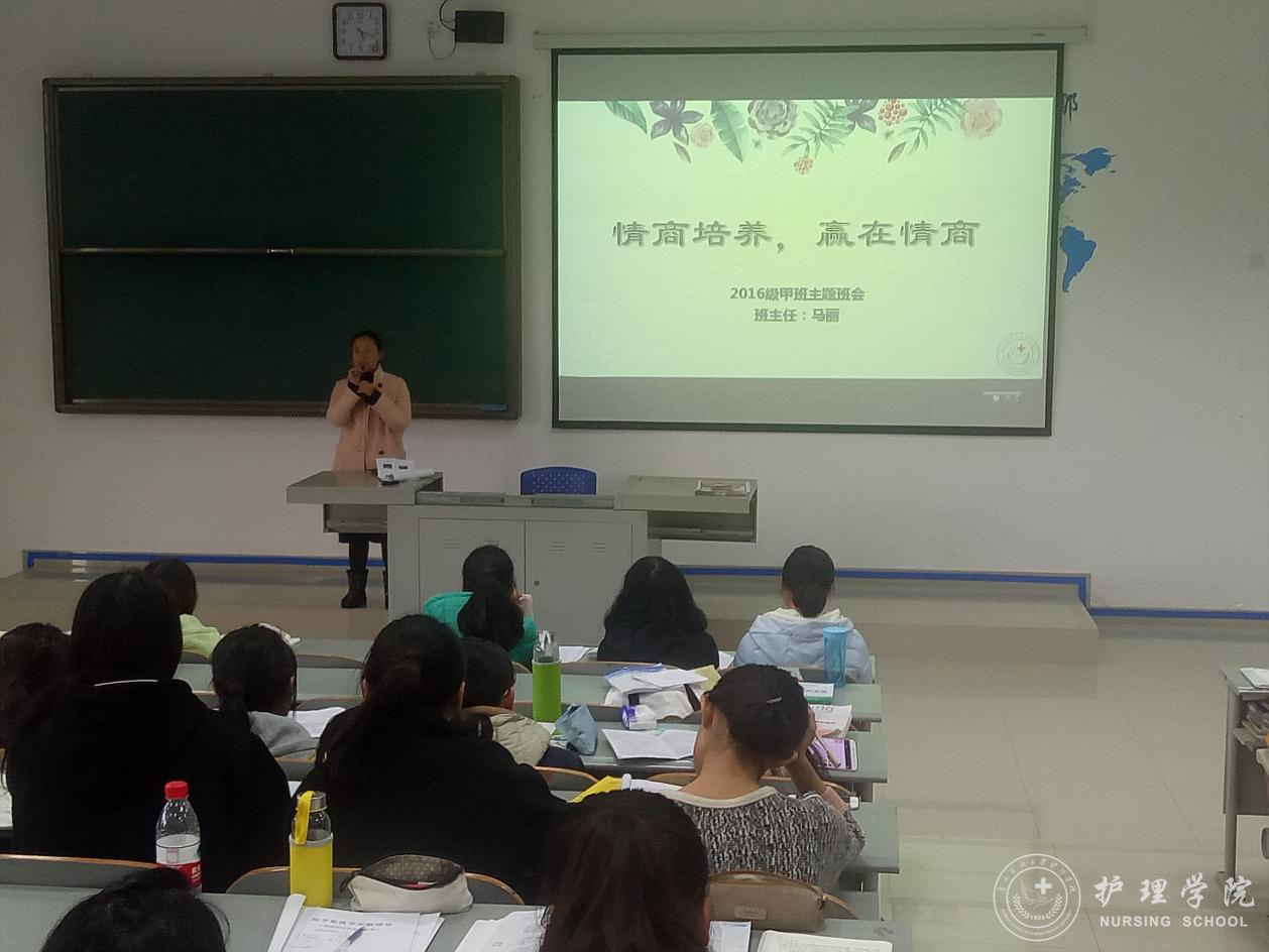 情商教育是造就全面发展护理人才的需要,是现代护理对护士素质的要求,也是确保护理工作质量的关键因素。为加强同学们对情商培养的重视,太阳集团tyc9728于11月29日下午在南校区4403教室开展 “情商培养 赢在情商”主题班会活动,班会由班长代敏同学主持,班主任马丽老师主讲,2016级护理甲班全体同学参加。