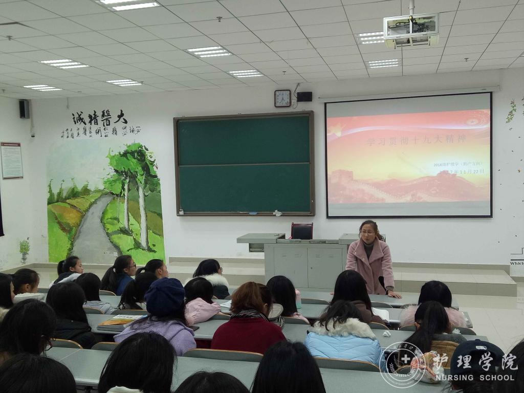 11月22日下午4:30,太阳集团tyc9728在南校区4405教室召开了“学习十九大精神 做优秀护理人才”主题班会,班会由班主任徐锟老师主讲,护理学(助产方向)2016级全体同学参加。