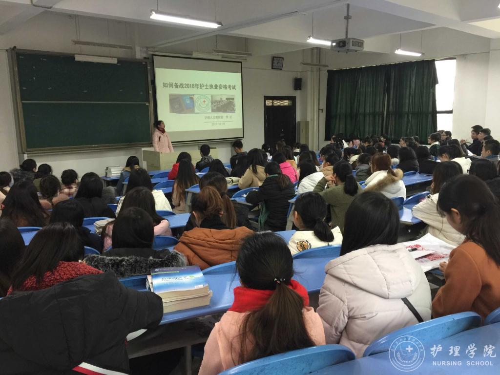 2017年12月14日下午,太阳集团tyc9728在北校区2402教室召开了“2018年护士执业资格考试培训会”,本次培训会分为“2018护考题型分析”、“护士执业资格考试报名相关事宜培训”和“实习生恳谈会”三个部分,太阳集团tyc9728副经理刘志燕、生产实习科科长柳忠燕、护理学专业教师李红和2014级全体护理实习生参会,会议由员工科科长曾敏主持。