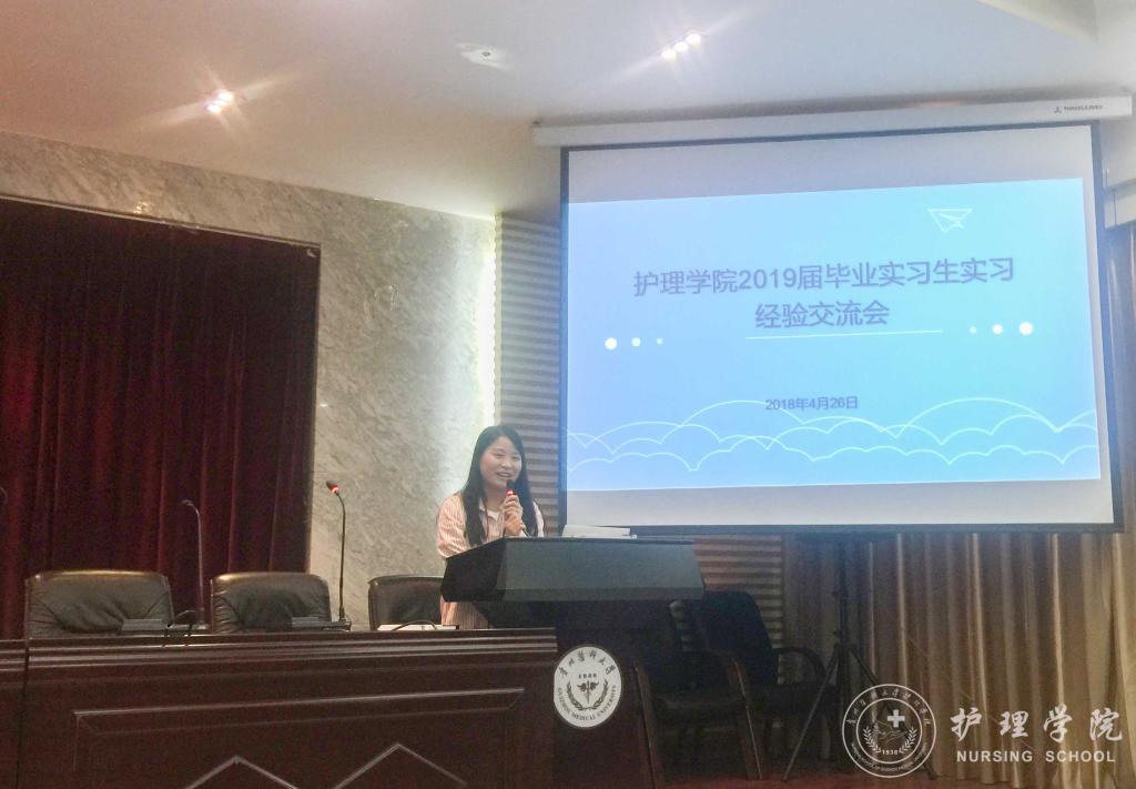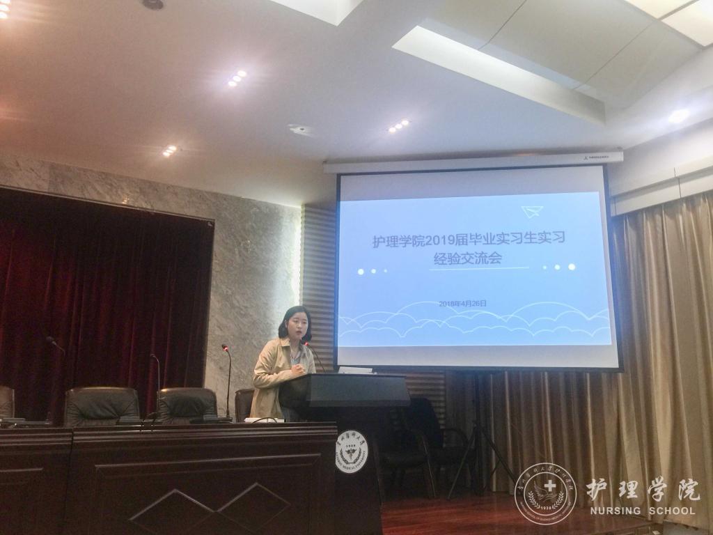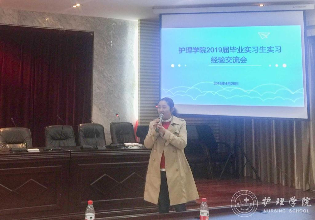 首先,李颖简单的介绍了出席交流会的同学和本次交流会的目的。接着,曾在重庆西南医院、太阳集团tyc9728附属医院、贵州省人民医院、贵州省妇幼保健院实习的优秀实习生代表唐昊宇、张敏、林娴、黄莉华、罗琳,结合自身情况分享各个实习医院的环境和要求,帮助大家初步熟悉实习地点情况、尽早进入实习状态。他们用实习期间积累的经验,向师弟师妹们讲解实习中会遇到的基本状况和突发状况及其应对措施,解说勤奋和情商的重要性,以及实习过程中要学会保护自己,并不断提高自身操作技能。让师弟师妹们直观的感受到了临床实习的氛围与激情。最后,员工科科长曾敏为本次交流会做出了总结,她希望同学们都要学好专业基本功,本着对生命负责任的态度对待实习,珍惜实习带来的宝贵实践经历,不断提高自身综合素质,用努力和行动,迎接明天的成功。
