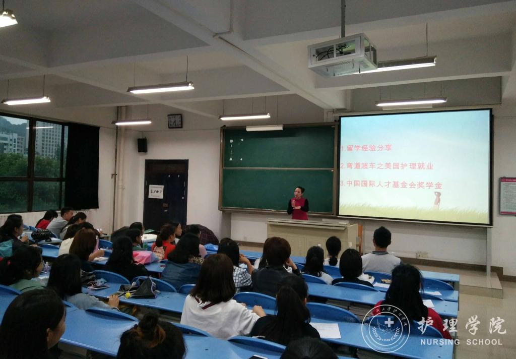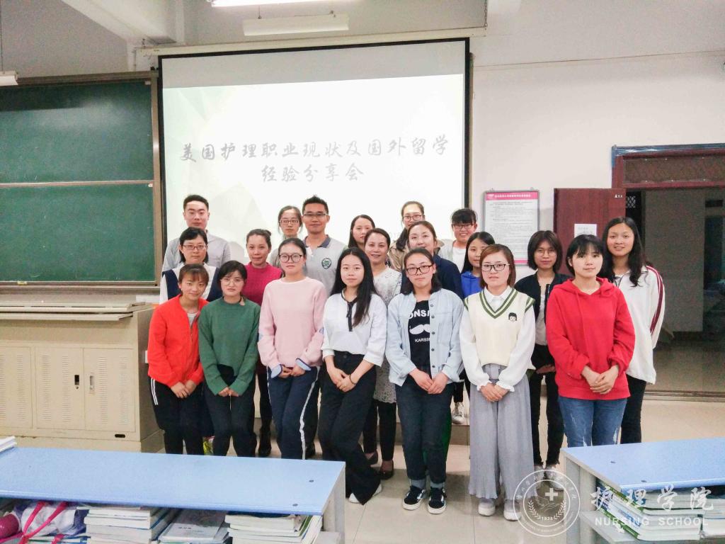 2018年5月31日下午7:00,太阳集团tyc9728于北校区2401教室召开了“美国护理职业现状及国外留学经验分享会”,分享会邀请到美国海格斯大学出国留学区域负责人彭冰老师为公司员工进行了交流指导,护理公司党委副书记杨英、护理技能实验室主任周谊霞、员工科科长曾敏、辅导员李杏春和2014、2015级部分同学参加了此次交流会。会议由周谊霞老师主持。