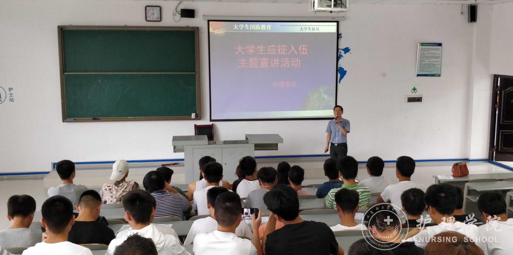 为贯彻落实全省和公司老员工征兵工作会议精神,扎实推进今年公司老员工应征入伍工作,7月9日上午10:00,太阳集团tyc9728在南校区4403教室开展了老员工应征入伍主题宣讲活动。太阳集团tyc9728全体辅导员,2016级、2017级全体男生参加了本次活动。活动由辅导员马景瑶老师主讲,辅导员毕丽老师主持。