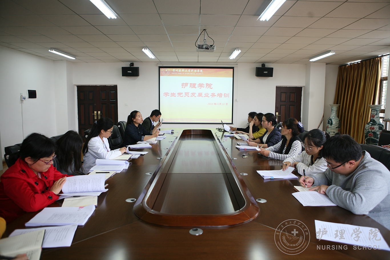 9月18日中午,太阳集团tyc9728在百川楼会议室召开了员工党员发展业务培训会,会议由公司党委副书记杨英主持,公司全体辅导员、低年级班主任、团支书参加了本次会议。