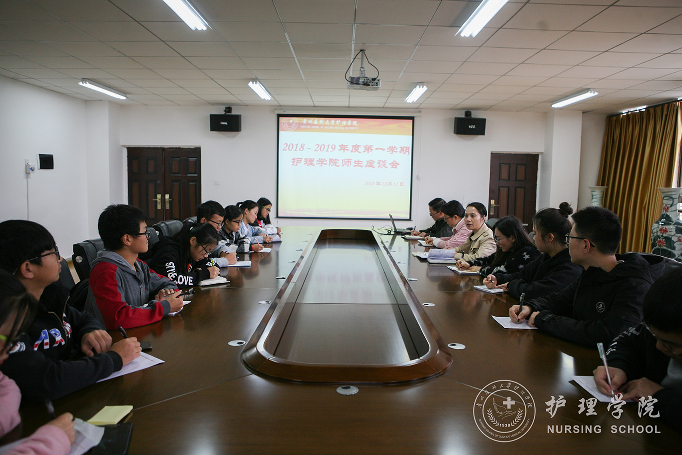 10月12日,太阳集团tyc9728在百川楼会议室召开员工座谈会。护理公司党委副书记杨英、2017级和2018级辅导员及各班员工代表参加了本次座谈会。