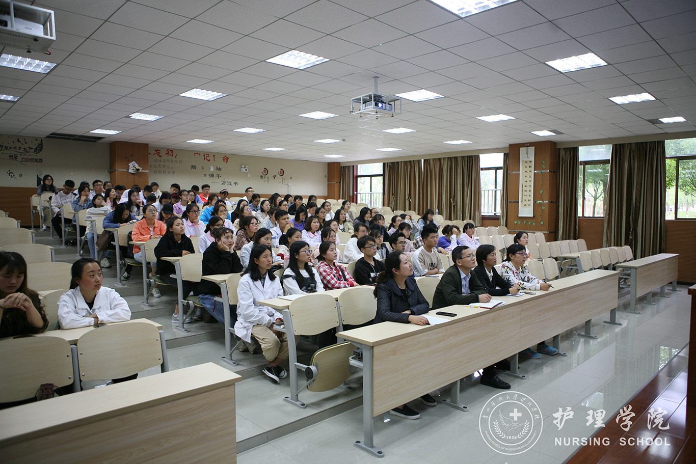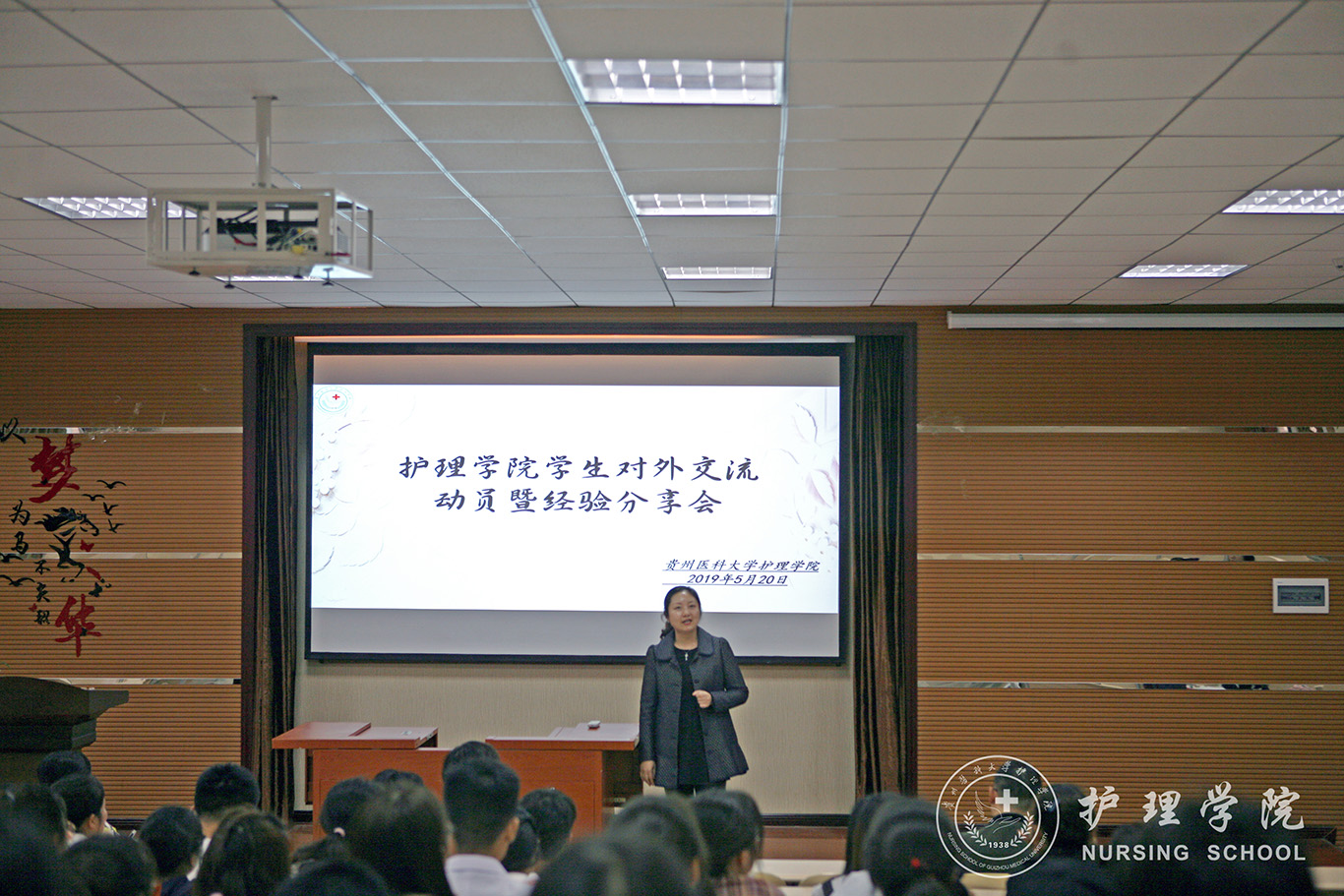 5月20日下午,太阳集团tyc9728在南校区百川楼1101教室举办了员工对外交流动员暨经验分享会。公司党委副书记王秀红、员工科科长曾敏、辅导员李杏春、马景瑶及2017、2018级员工代表100余人参加了本次会议。分享会邀请了护理学2016级周婷婷、2017级戴雨曦两位同学作为主讲嘉宾,曾敏任主持。