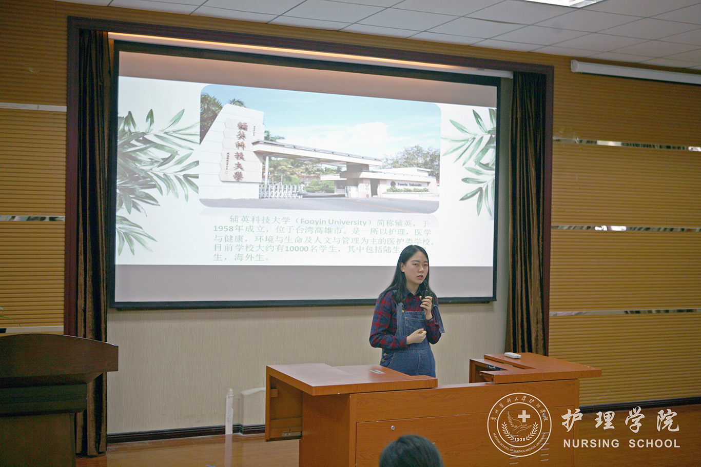会上,周婷婷和戴雨曦分别给同学们分享了各自在台湾辅英科技大学交流学习的经历与感受。两位同学从学习氛围对自身学习习惯的影响、辅英的教学方式、公司师生对交流同学的关爱、参加社区义工活动、生活条件、经济支出等方面进行了讲述。生动真切的分享激发了在座同学对对外交流的了解和向往。