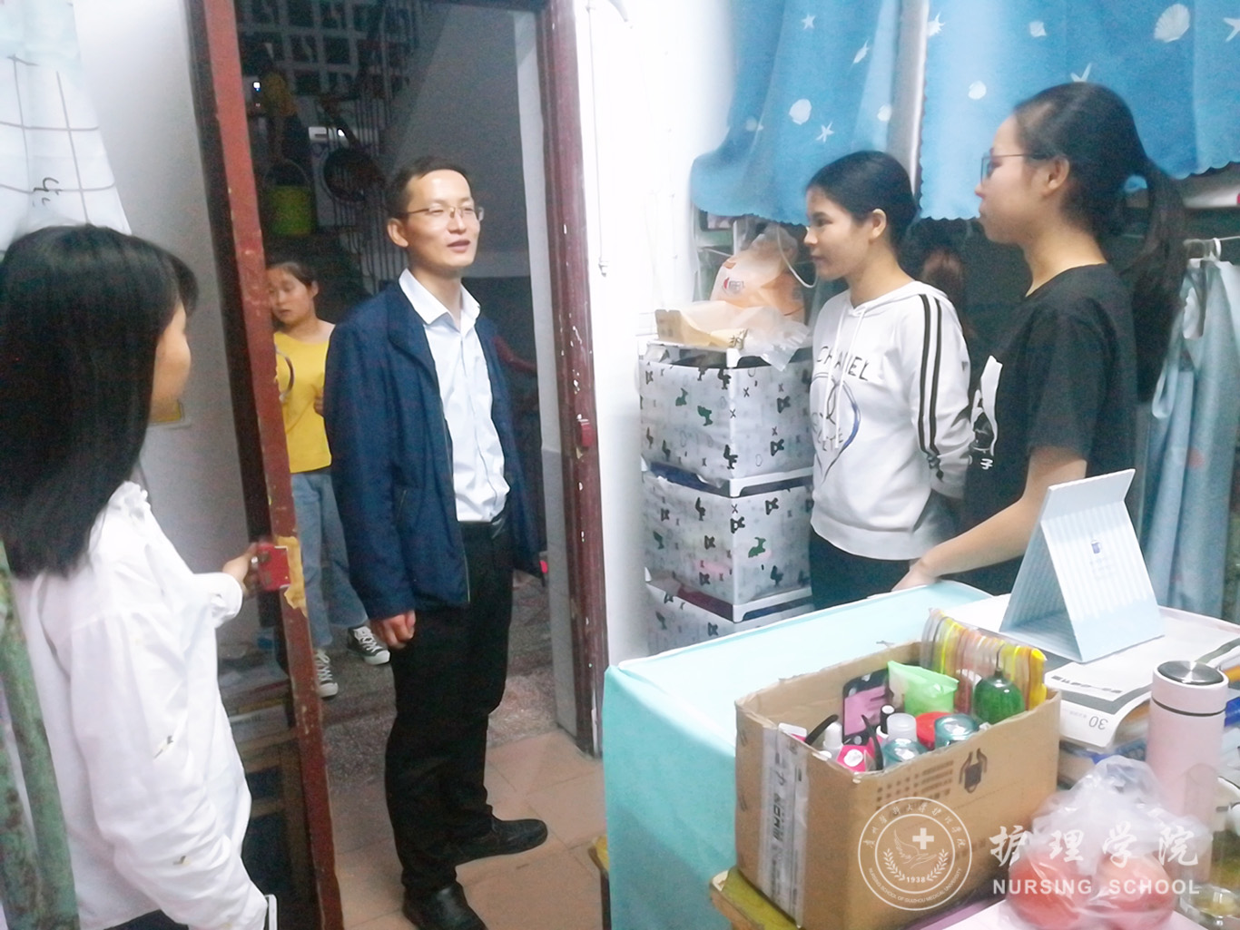 新中国建国70周年国庆来临之际,为确保校园安全稳定及员工人身、财产安全,营造良好的学习生活环境,9月26日中午,护理公司党委副书记王秀红、员工科副科长毕丽以及各年级辅导员带领部分班委组成检查小组,分别对南、北校区员工寝室进行了安全检查。