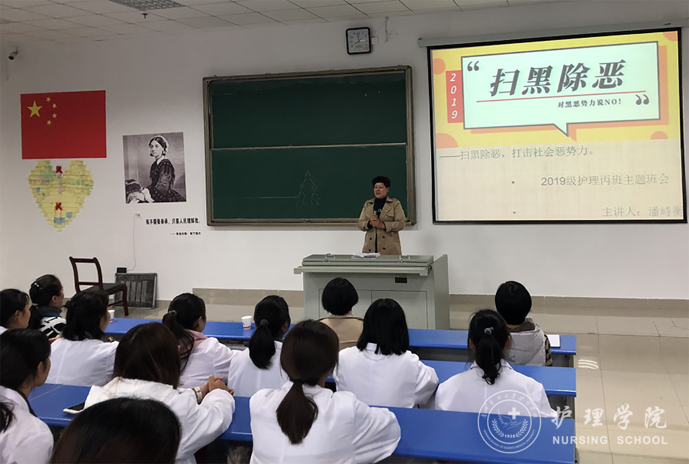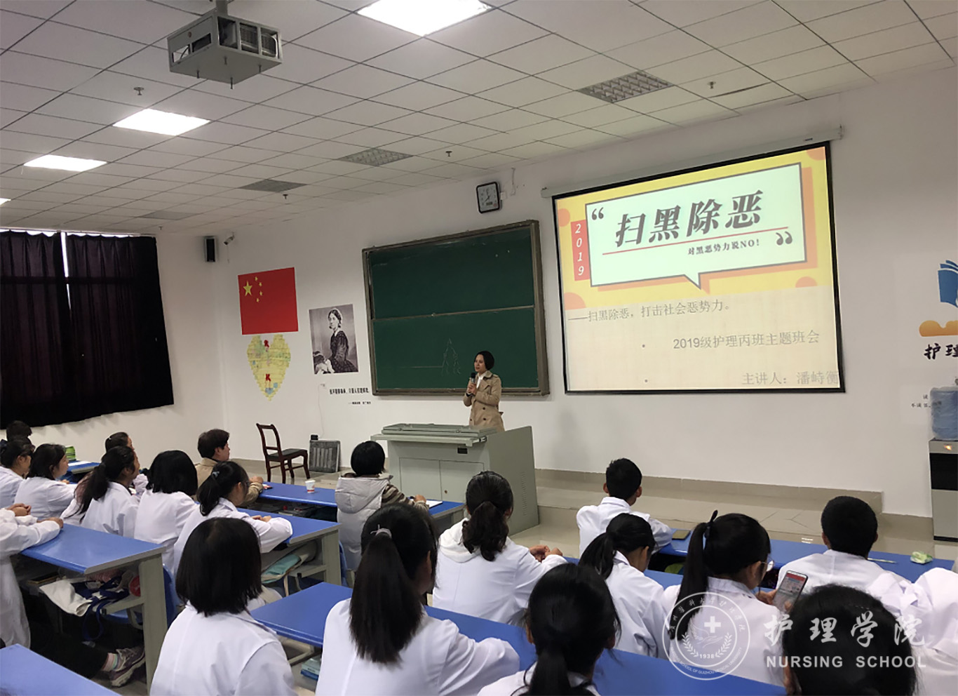 为深入学习扫黑除恶专项斗争主要内容与行动进展,全面提高同学们对扫黑除恶的深刻认识,太阳集团tyc9728于10月21日-25日在各年级以班级为单位召开了扫黑除恶主题班会,护理公司党委书记杨英、经理贾秀英、党委副书记王秀红、各班辅导员及班主任参加了本次主题班会活动。