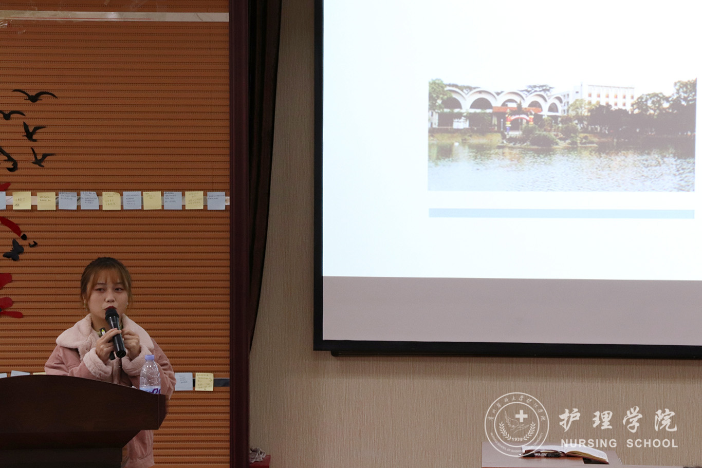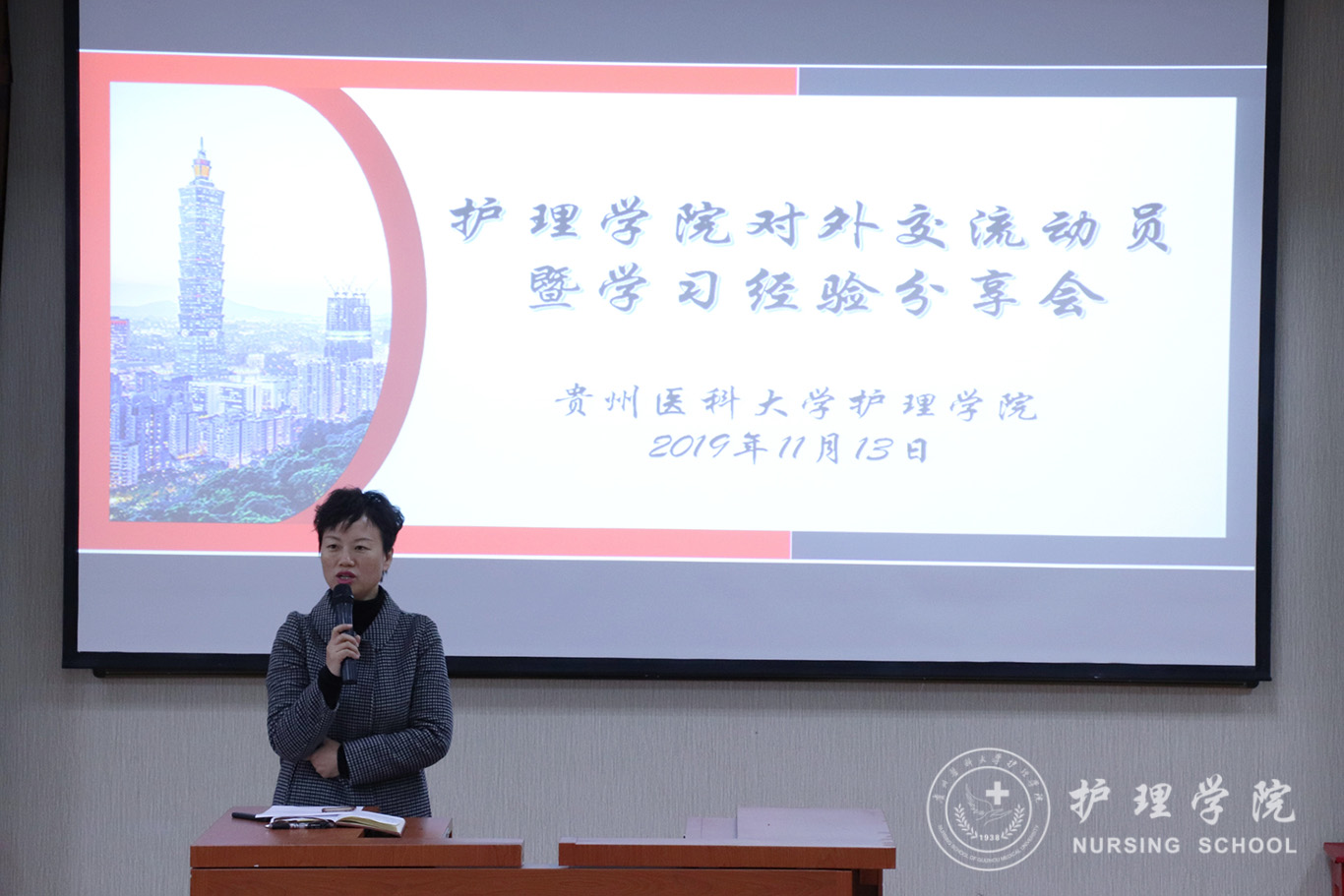 首先,毕丽解读了公司关于选拔员工赴境外交流学习的相关文件精神,对2020年春季对外交流学习项目进行了简要介绍。接下来,护理学2018级王文妮、助产学2018级焦婧两位同学分别就自己在台湾辅英科技大学一个学期的交流学习作了精彩分享。两位同学从入学前准备、课程学习、课外娱乐以及学习感悟等方面进行了详细介绍,落落大方的举止、生动自然的表达,潜心钻研学习的精神赢得了在场师生的赞誉。接下来,王秀红作对外交流动员讲话,她勉励同学们要珍惜机会,学会通过利用交换学习机会提升自己的综合能力;要树立国际视野,拓展见识,培养“走出去”意识;她嘱咐同学们:要读万卷书,也要行万里路。对外交流可以让我们及时找到差距,及时反思,促进学习由被动变为主动。青年学子要树立远大理想,不断更新观念,提升综合素质,为建设我们美丽富饶的祖国贡献更大的力量。