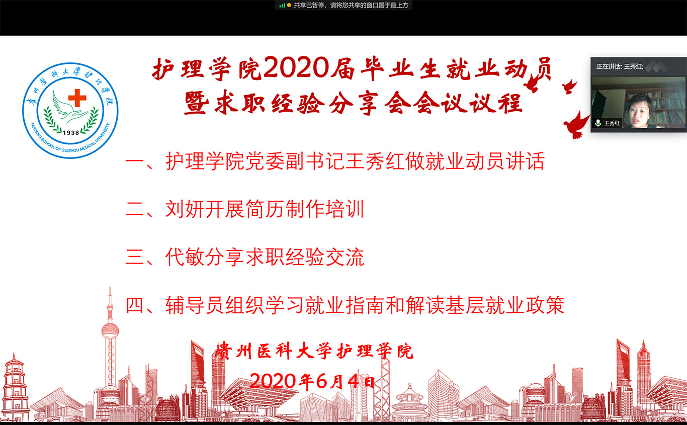 为了抢抓就业招聘黄金期,充分促进公司2020届毕业生尽快实现就业,6月4日晚8:30,公司召开了就业动员暨求职经验分享会,护理公司党委副书记王秀红、全体2020届未就业员工参加了此次会议,会议由公司员工管理科副科长兼毕业班辅导员毕丽主持,采用腾讯会议形式进行。
