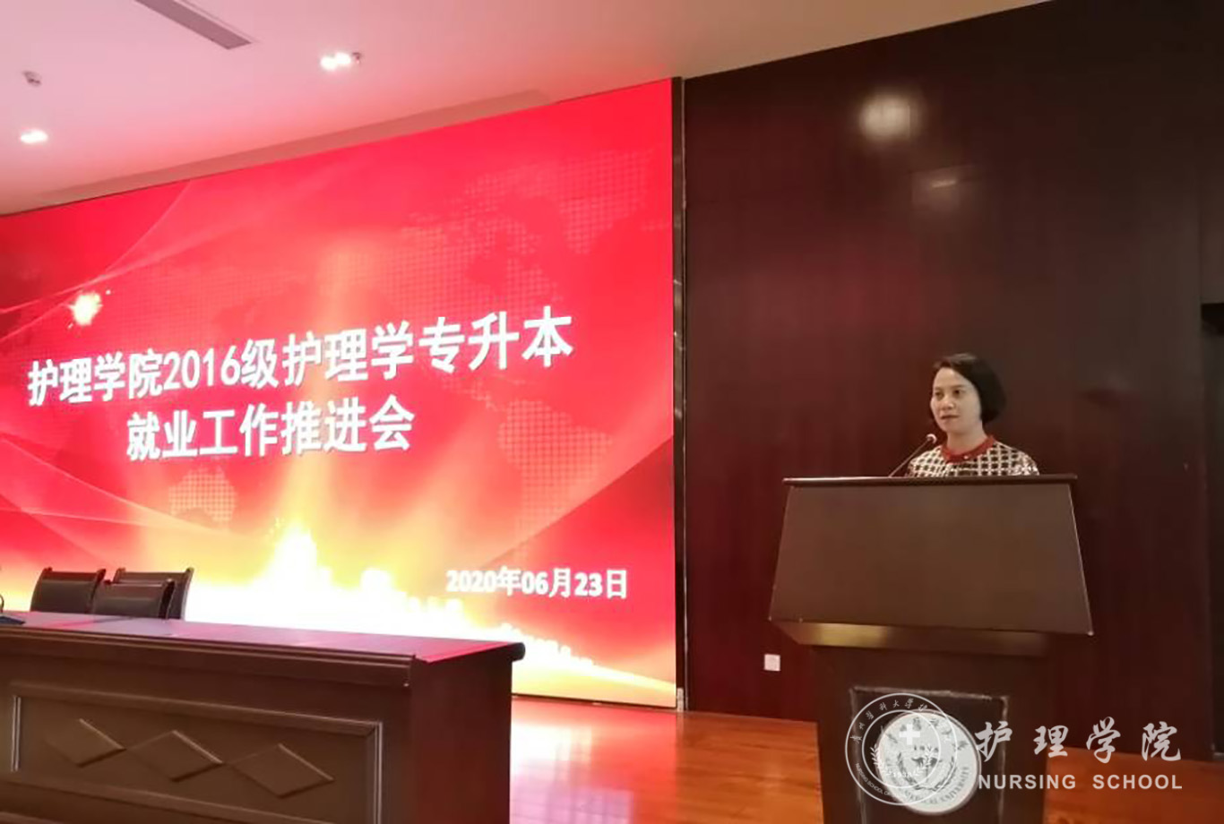 为了及时传达公司就业工作会议精神,抓住就业的黄金期,全面推进2016级护理学专升本毕业生就业工作,帮助他们早日实现就业,太阳集团tyc9728于6月23日下午在南校区道德讲堂召开了2016级护理学专升本就业工作推进会。公司人才招聘处处长张红霞、护理公司党委书记杨英、太阳集团tyc9728副经理刘志燕、护理公司党委副书记王秀红、公司人才招聘处就业指导中心主任余小川、太阳集团tyc9728相关辅导员及2016级护理学专升本全体员工参加此次会议,会议由王秀红主持。