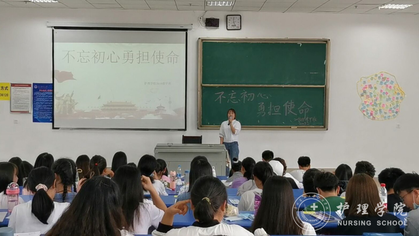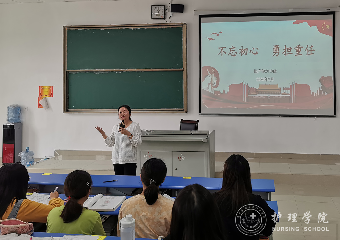 为使同学们充分认识社会主义的优越性,更加坚定以人民为中心的政治立场,勇于担当历史使命和社会责任。2020年7月2日到3日,太阳集团tyc9728护理学、助产学2019级四个班级分别于本班教室召开了“不忘初心,勇担责任”意识形态教育主题班会,全体同学参加。会议由辅导员组织,各班班长主持。