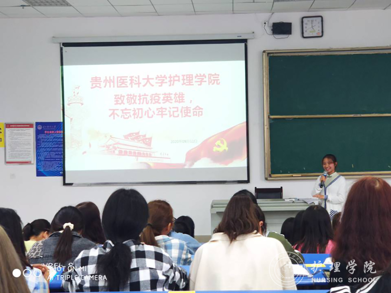 为了进一步加强对新一代青年老员工思想政治教育,树牢员工“四个自信”、“四个意识”,让员工充分感受到社会主义制度的优越性,培养员工勇于担当社会责任,向在抗击新冠疫情中不怕苦、不畏难的医疗前辈们学习。9月11日,太阳集团tyc9728于南校区广德楼1501教室、北校区3102教室分别开展了“致敬抗疫英雄,不忘初心、牢记使命”主题团日宣讲活动。本次主题团日宣讲活动由2019级护理学甲班团支部书记张凤毅同学和2018级护理学甲班团支部书记蓝阔耀同学主持。