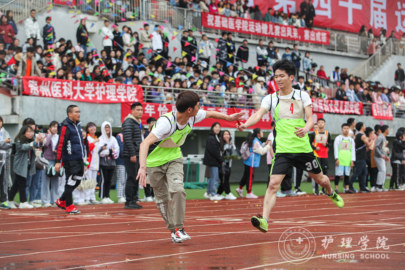 伴着和煦的春风,体育场上,运动健儿展风采,贵医师生竞风流。即使是下着雨也浇灭不了观众席呐喊的热情,更浇不灭运动健儿们昂扬的斗志。田径场上,他们如箭在弦,在枪声响起的那一刹那飞驰而出;他们奋力一掷,让凝聚期望的铅球在半空划出美丽弧线;他们纵身一跃,如海上的浪花竭尽全力触碰天空。最终斩获男子1500米第二名、男子5000米第二名、女子4×400第二名,女子800米第三名,女子100米跨栏第三名等个人奖项。运动员们之所以能获得这些好成绩,得益于半个月以来的体能和专项训练,离不开领导老师们的关怀、后勤同学的细心照顾以及看台上所有啦啦队的呐喊助威。在全体师生的共同努力下,公司荣获团体总分第四及最佳组织奖的好成绩。